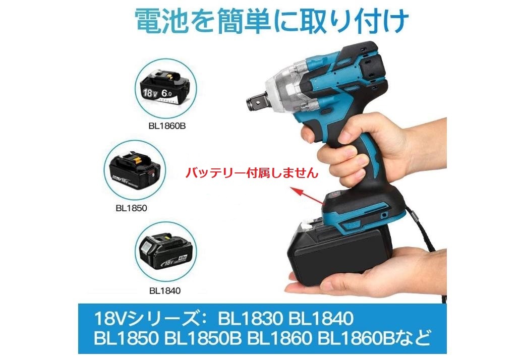 この商品マキタ製品ではなく海外製品ノーブランド品ですがマキタ、18vでも14.4vバッテリーどちらも使用可能です。差込角:12.7mm、1/2インチ ドライバービット:6.3mm、1/4インチ。