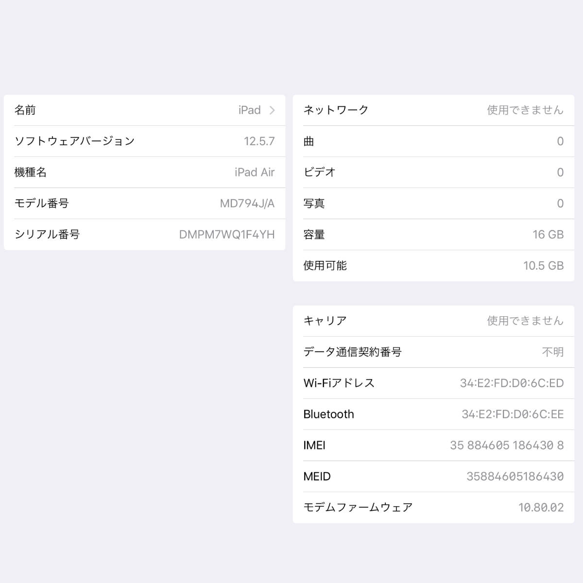 機種名:iPad Air