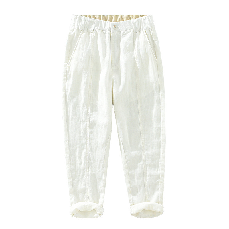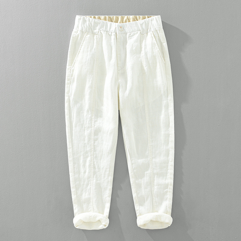 新入荷上質リネンパンツ メンズ新品九分丈 サマーパンツ麻100% パンツ スラックス春夏服通気ズボン白【M-3XL選択】2色