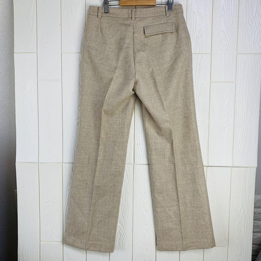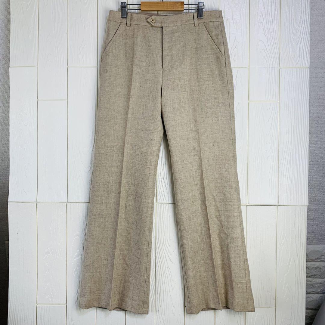 ベージュのスラックス、ウエスト72cm、股下69cmのスタイリッシュなデザイン。
