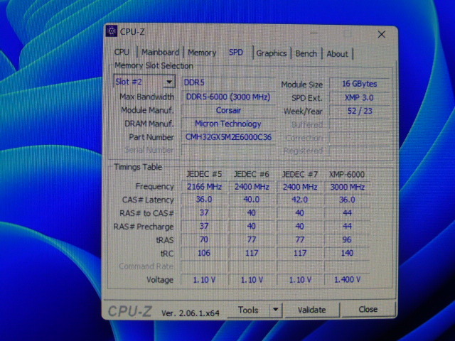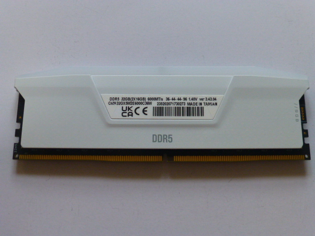 元々はCMH32GX5M2E6000C36Wの形式で2枚組で販売されていたメモリの1枚のみになります