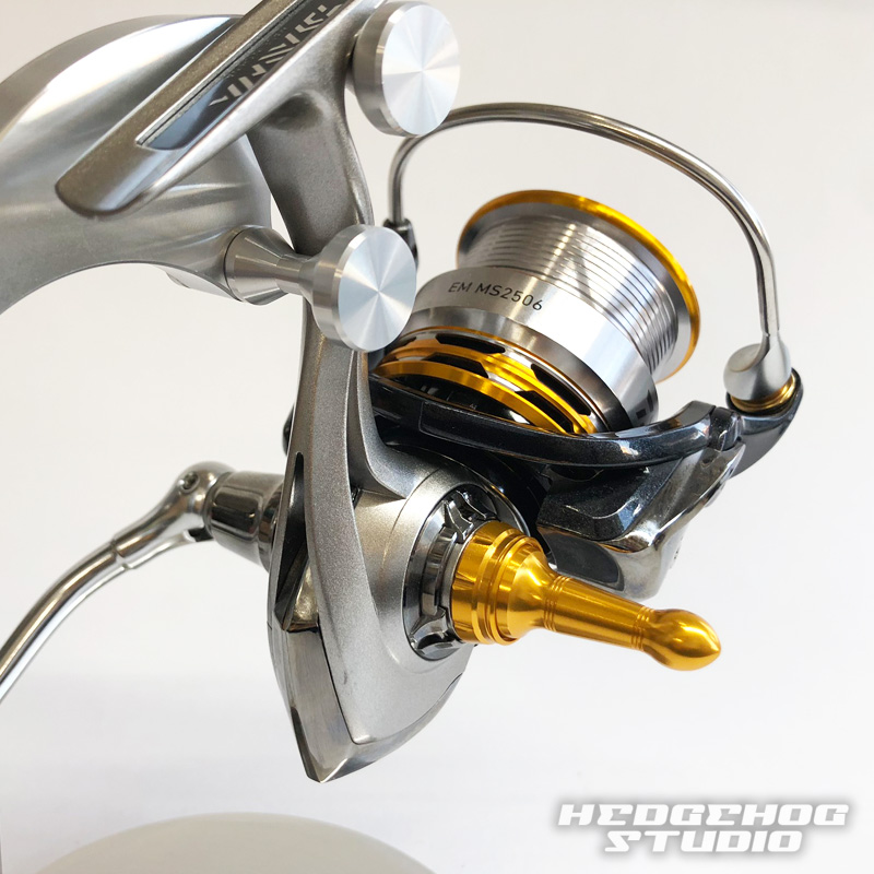ジュラルミンを削り出し作成した、ダイワ製スピニングリールに取付可能なハンドルスクリューキャップのロングモデルです。