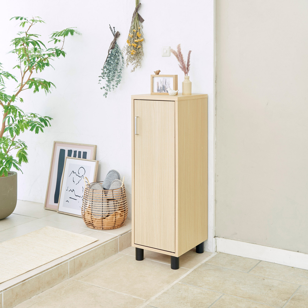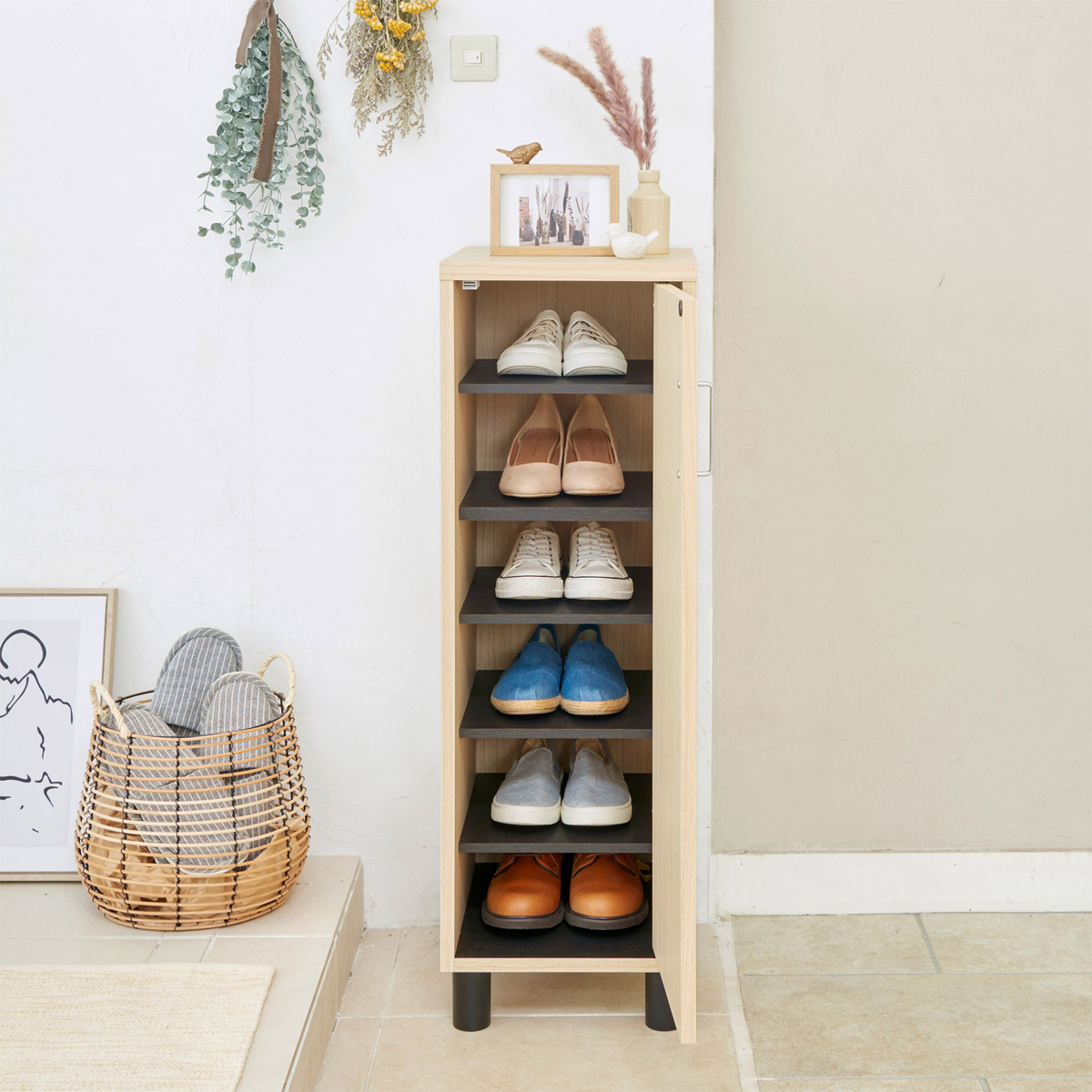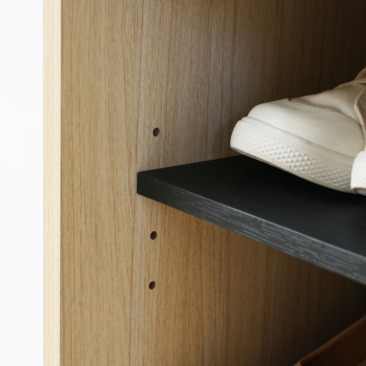 | 特徴 | ●幅約33cm、高さ99cmのコンパクトな下駄箱です。 ●靴収納目安は、約6足収納できます。 ●棚板を外せばブーツも収納できます。 ●移動棚4枚 |