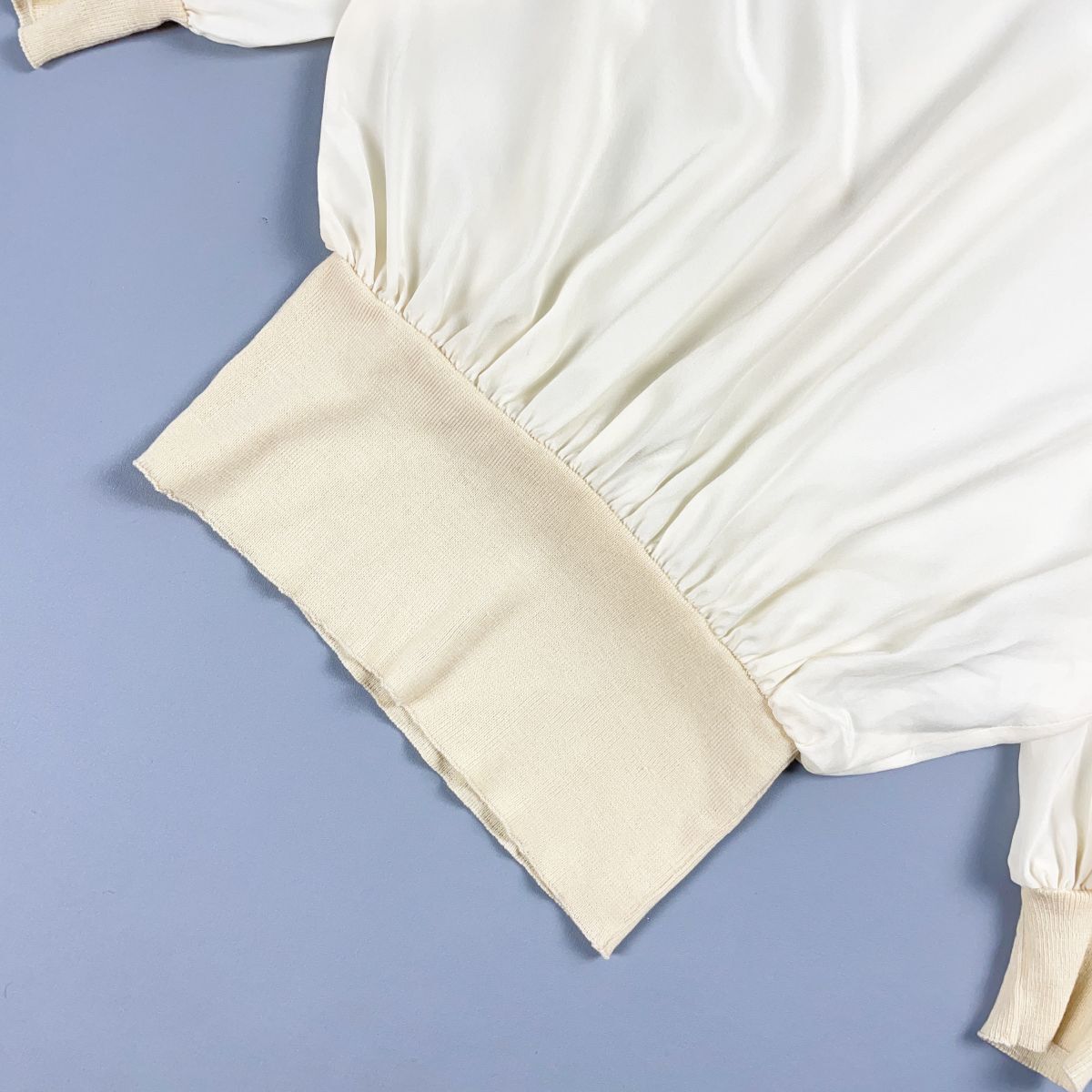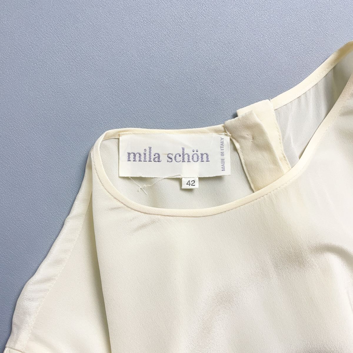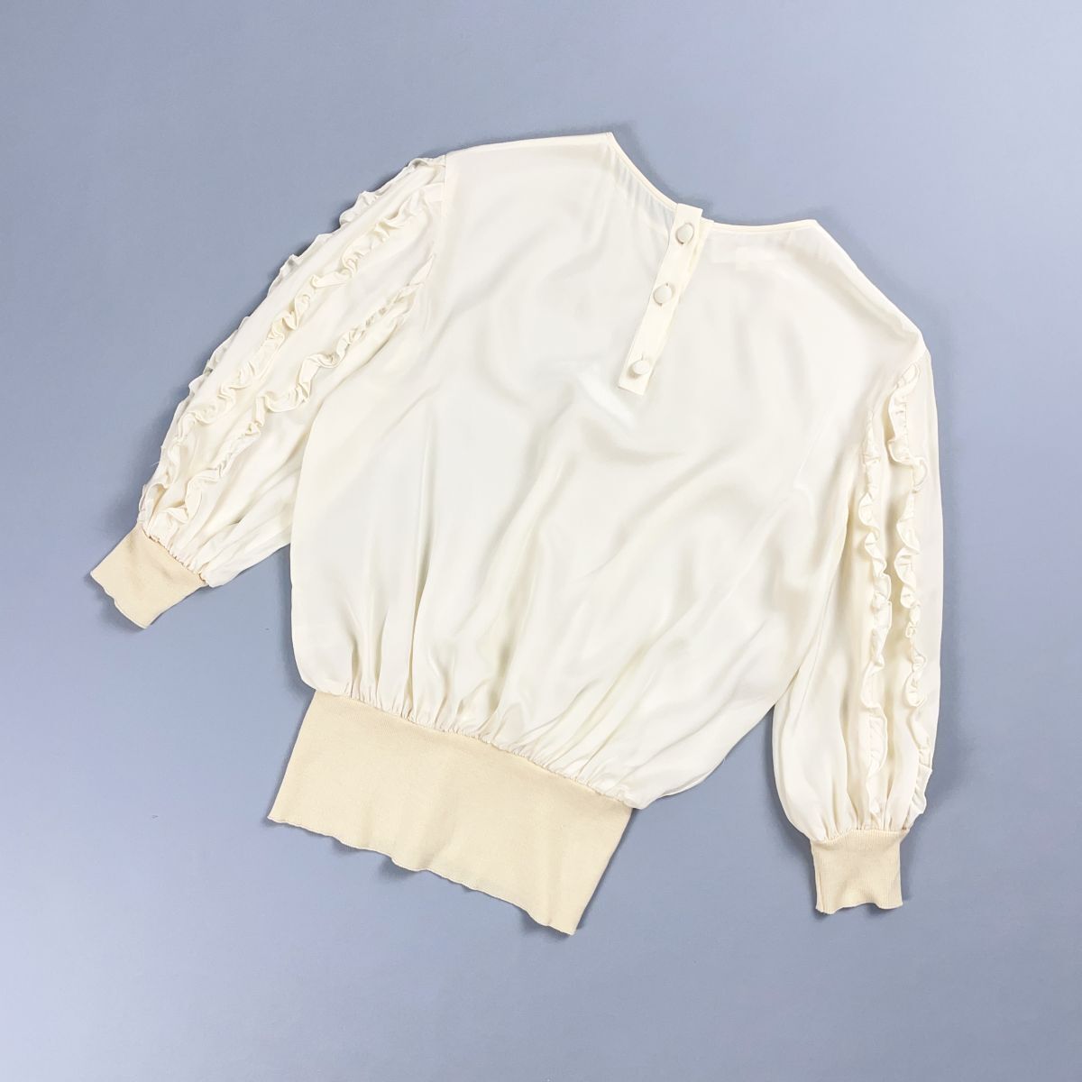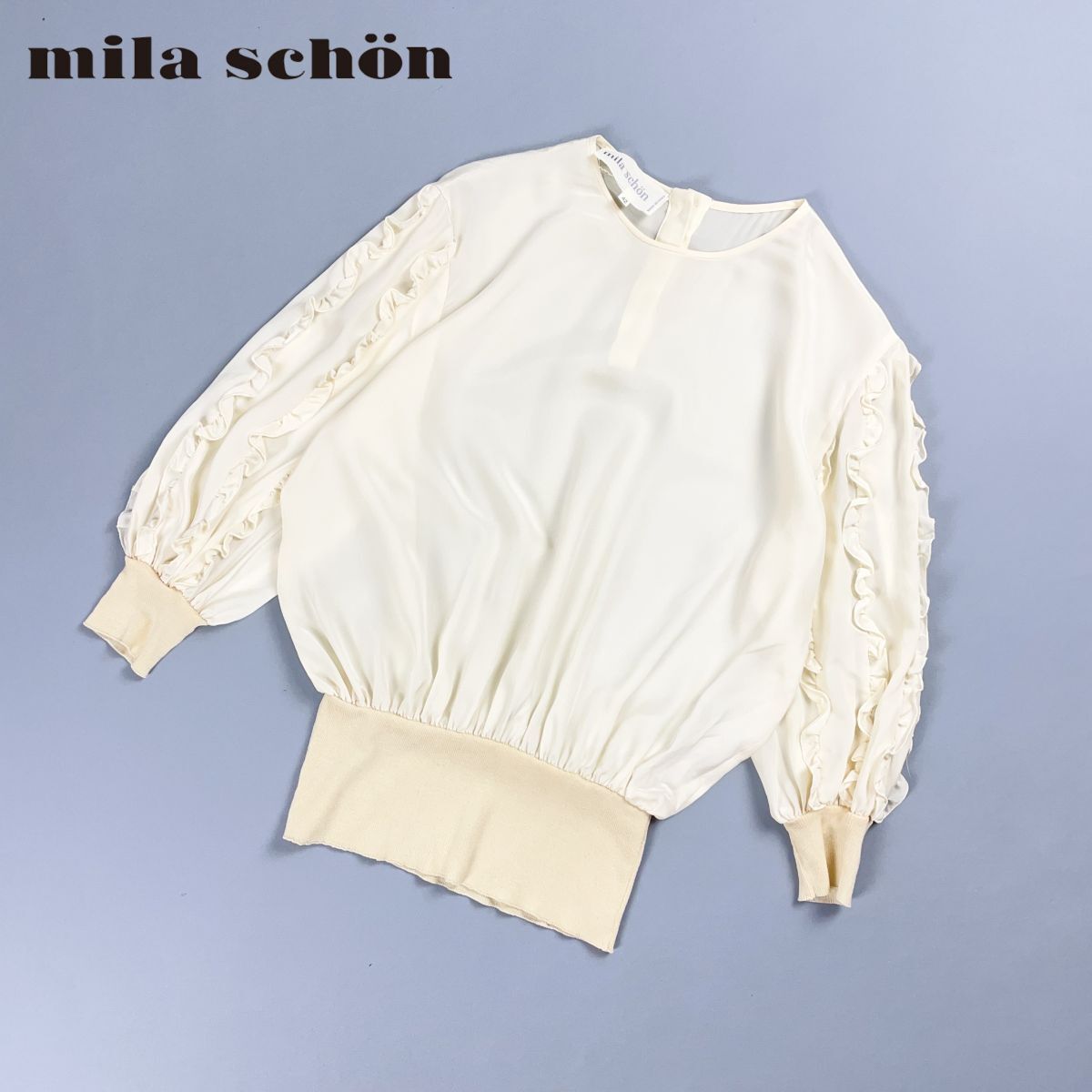 美品 Mila Schon ミラショーン 袖フリルブラウス 長袖 リブ切替 イタリア製 シースルー レディース アイボリー 生成り サイズ42*CD108