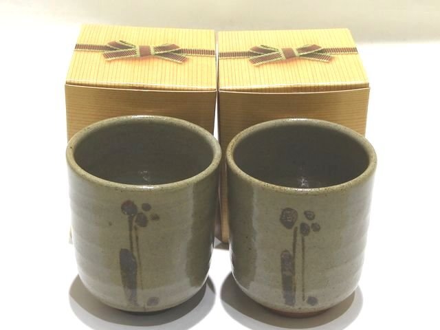 未使用品 唐津焼 ミニ 湯呑み 2客セット ◇ 陶器 食器 ▼7E