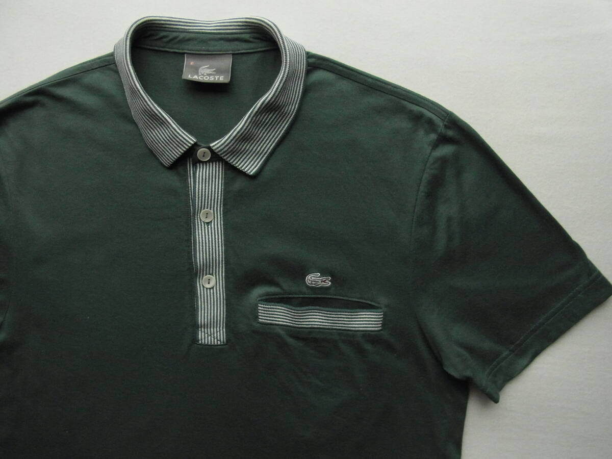 LACOSTE ラコステ ポケット付き ポロシャツ サイズ 3 日本製  ダークグリーンベース