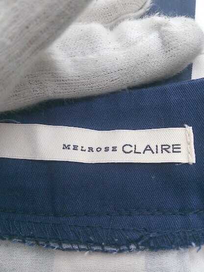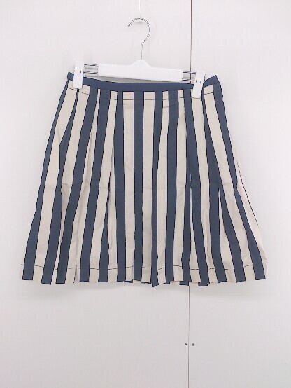 ◇ MELROSE claire ストライプ タック 膝丈 フレア スカート サイズ3 ネイビー ホワイト系 レディース E