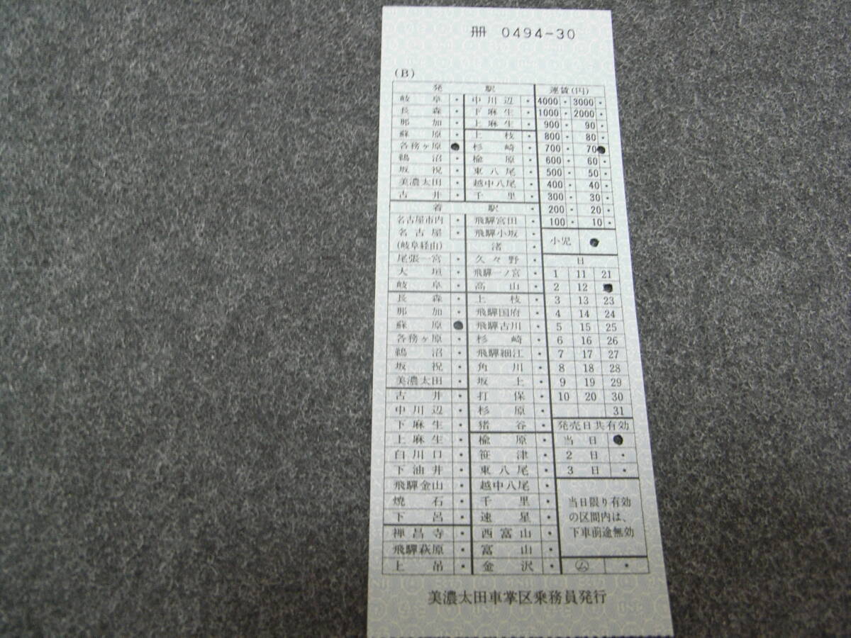車内補充券 美濃太田車掌区乗務員発行 0494-30 高山本線