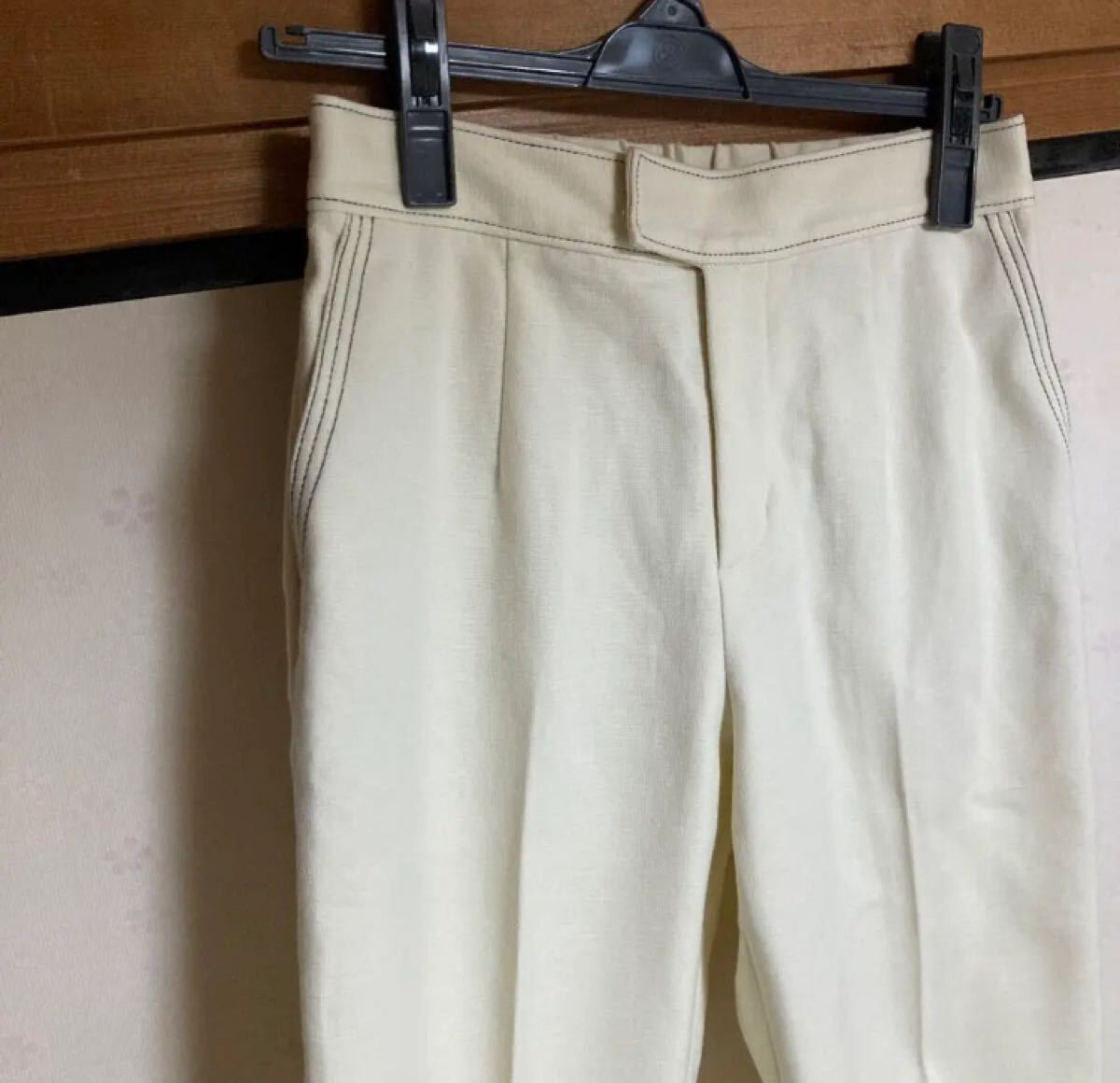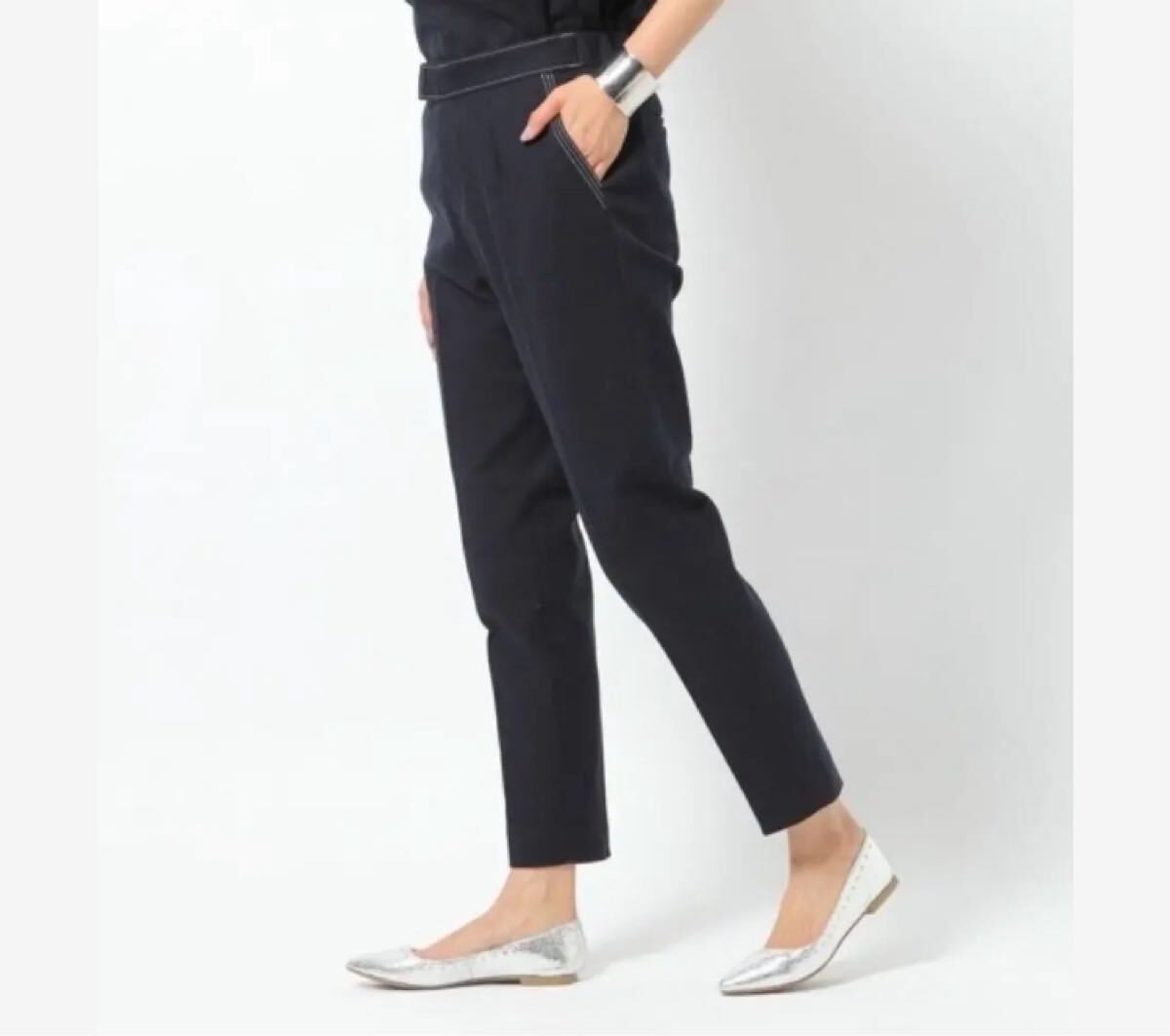 ウエスト周りやポケットの紺色のステッチがポイントになって可愛いです^_^