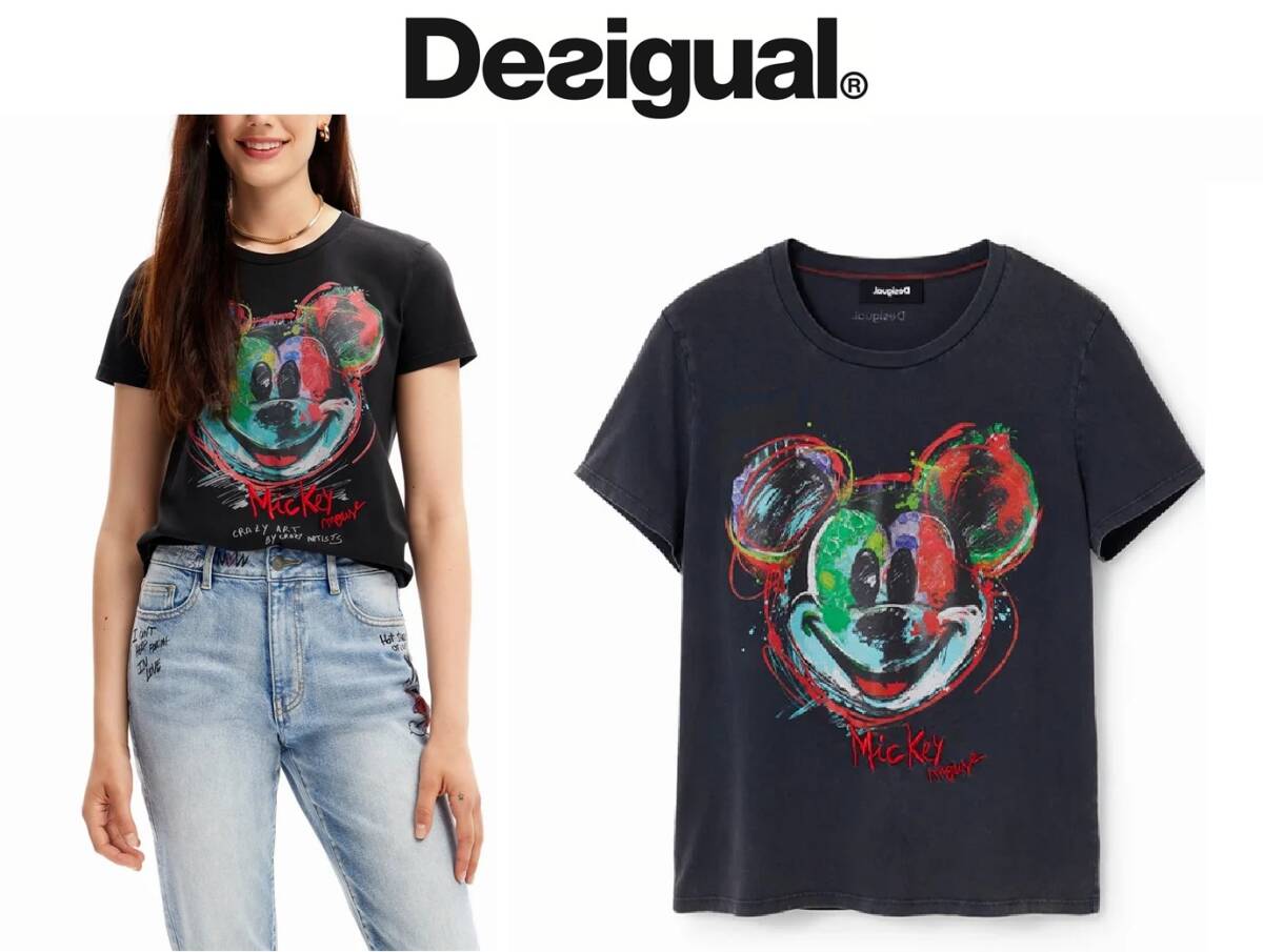 新品! 【Desigual(デシグアル)】レディース ペイント ミッキー Tシャツ
