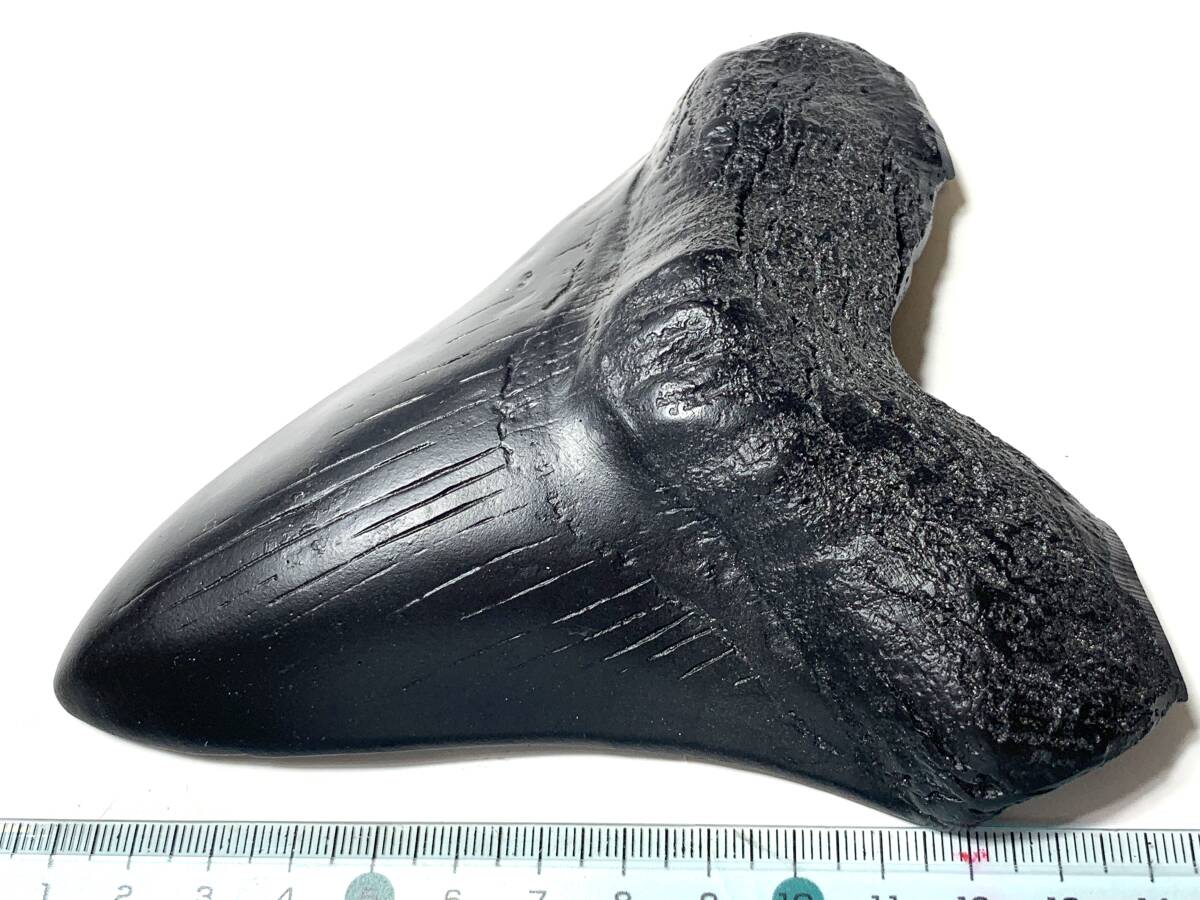 【商品の説明】 サイズは、写真に映り込んだ物差しからご判断ください。一回り小さいものも出していますが、こちらは特大サイズです。ただし、小さい方は、鋸歯(ステーキナイフのようなギザギザの歯)まで克明に再現していますが、こちらはツルンと仕上げられています。そこだけちょっと残念ですね。また、写真は使い回しです。