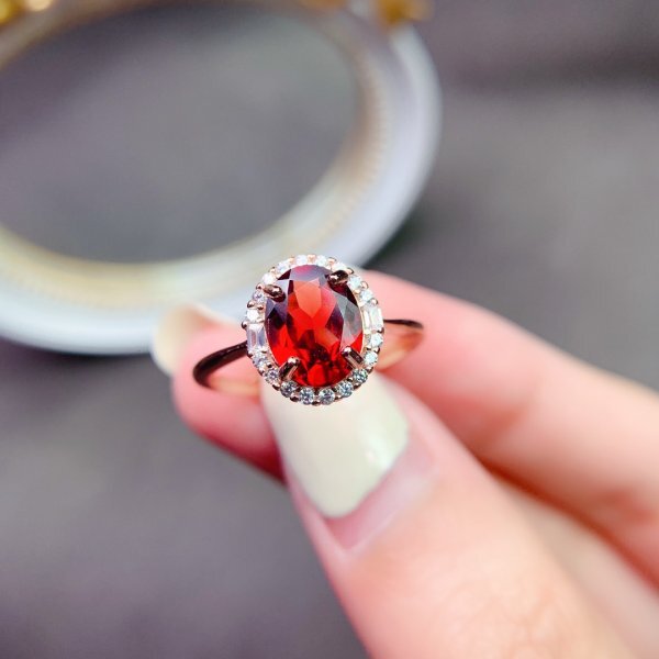 女性用天然ガーネットジュエリー セット(ネックレス、リング、ピアス)、7×9mm、 925シルバー 、高級ジュエリー、エレガント