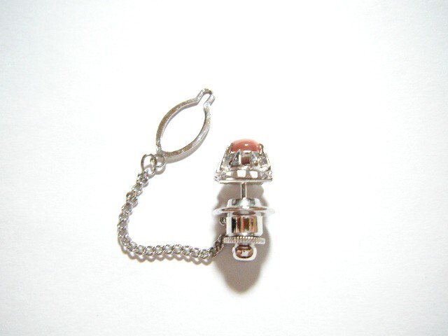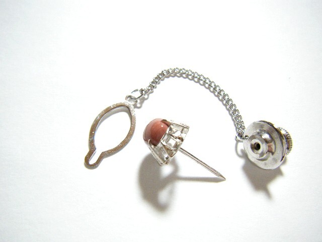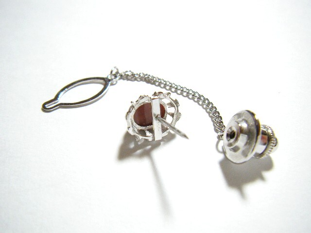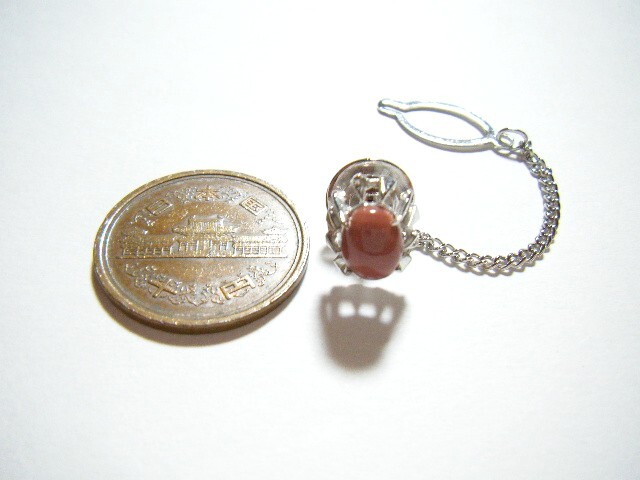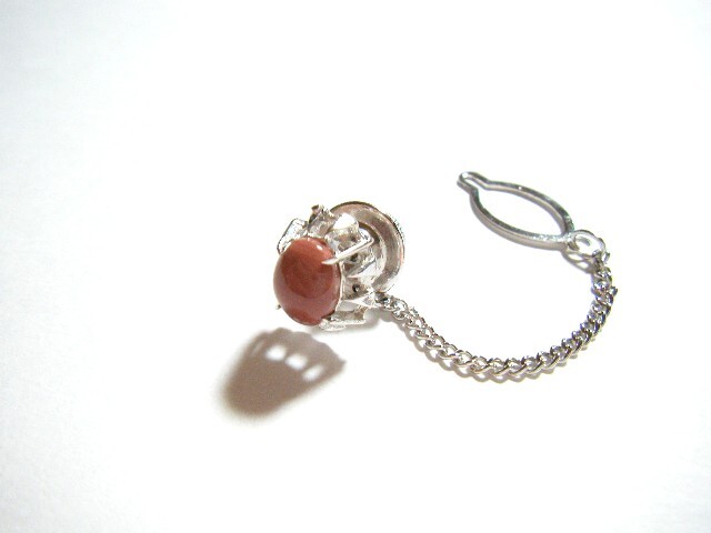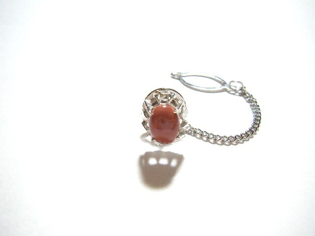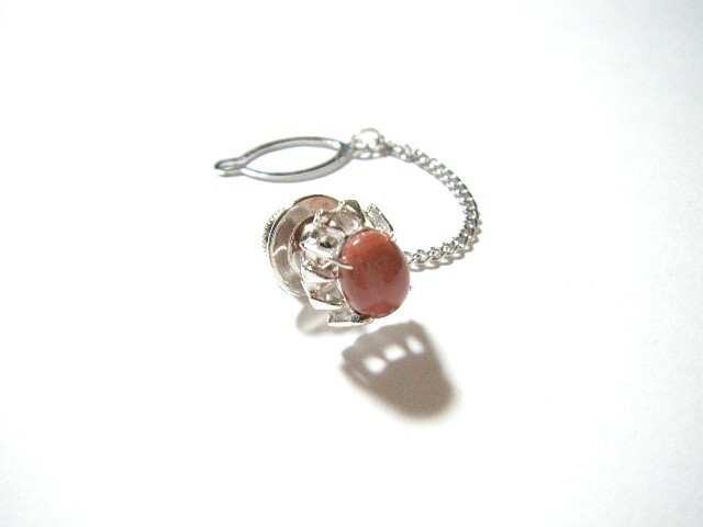 ★朱竹石 タイピン タイタック 天然石 ストーン シルバーカラー【AZ24】