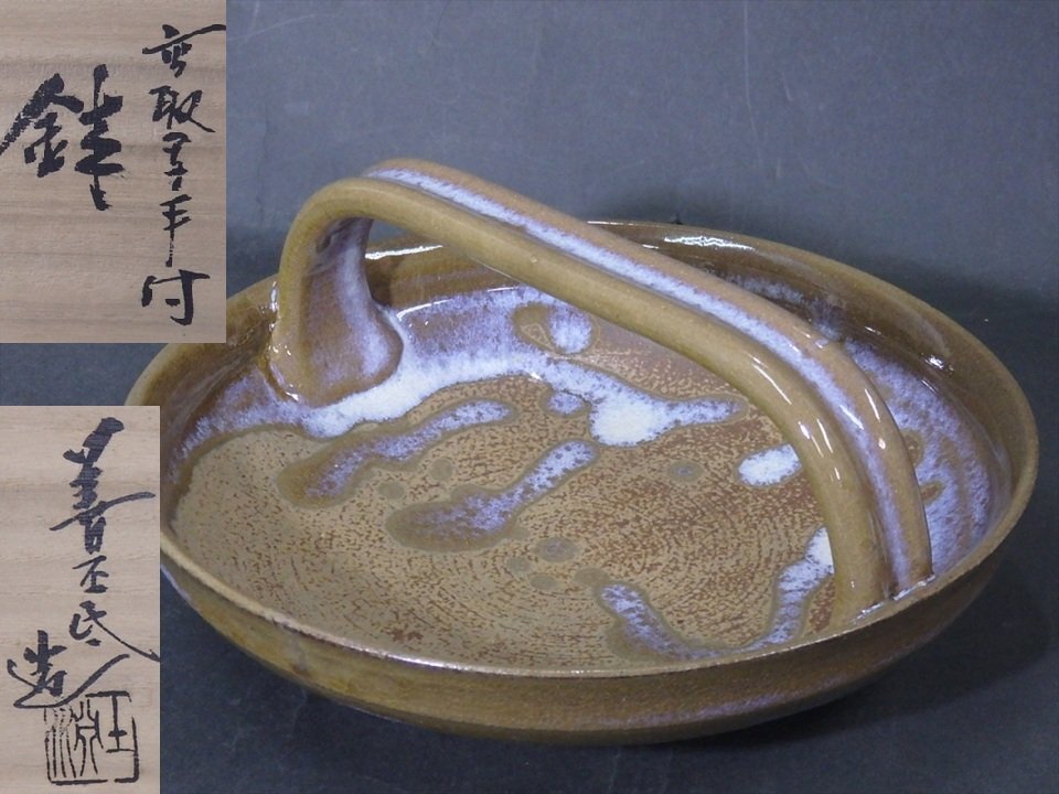 ★セール!土渕善丕氏造【高取写手付鉢 共箱】ワレカケなし! 直径22.8cm 高さ10.5cm 京焼 茶道具 菓子器 和食器 茶器