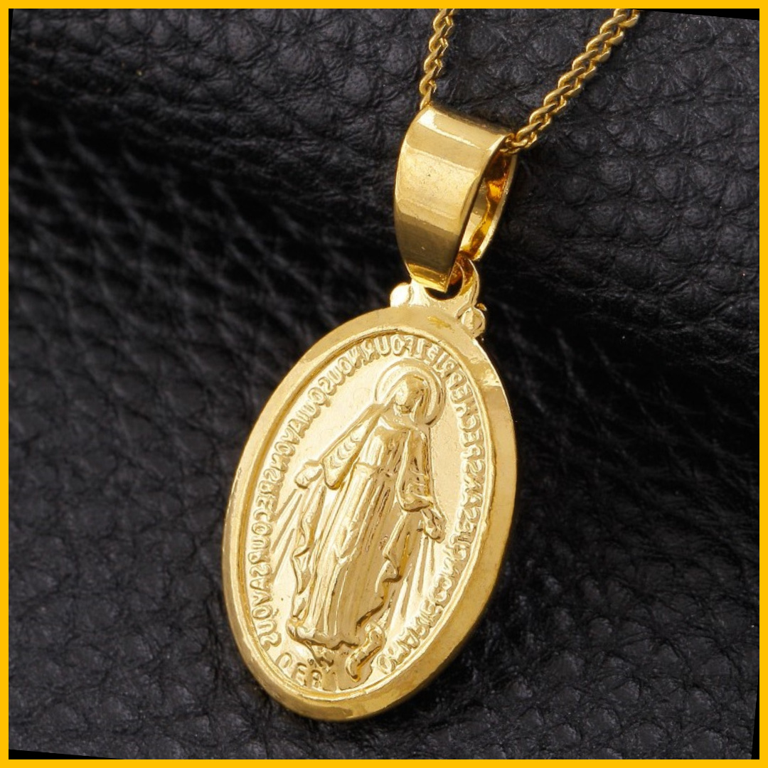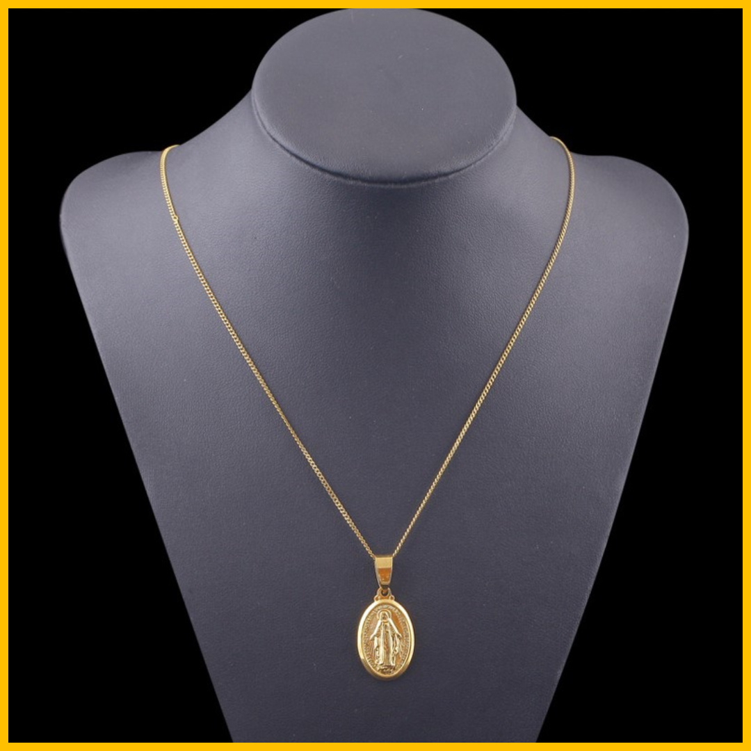 トップに聖母マリアをあしらったシンプルなメダルタイプのネックレスです。