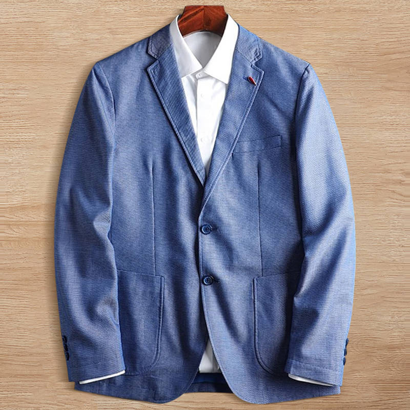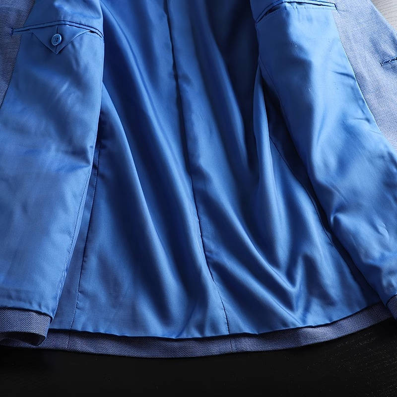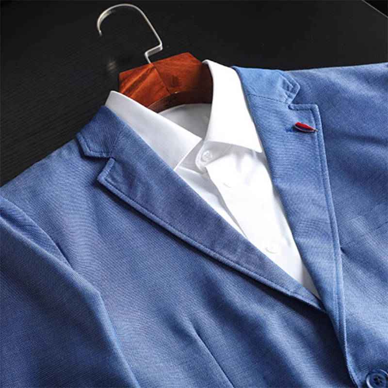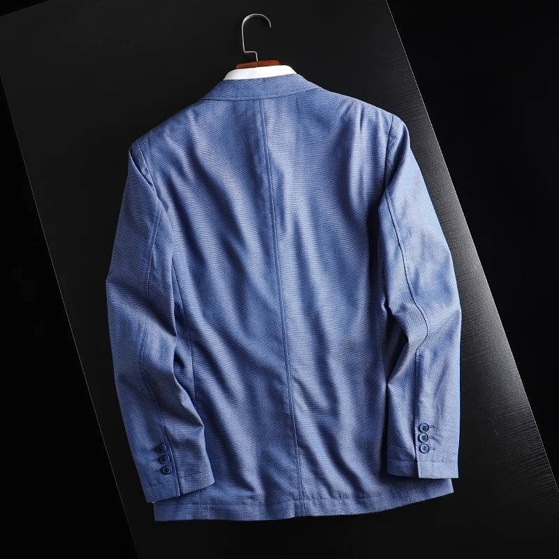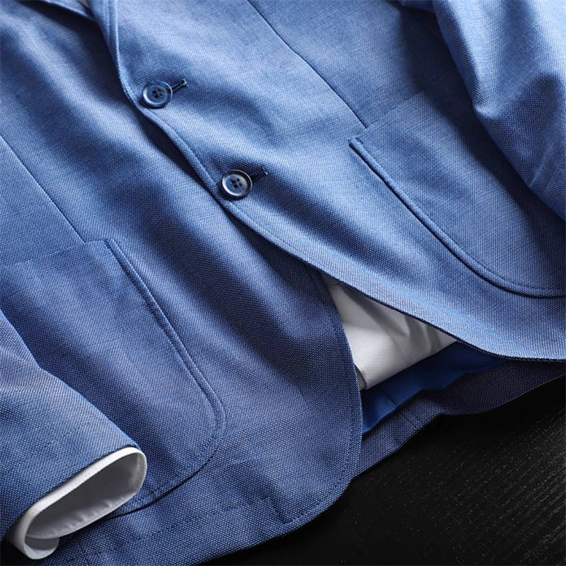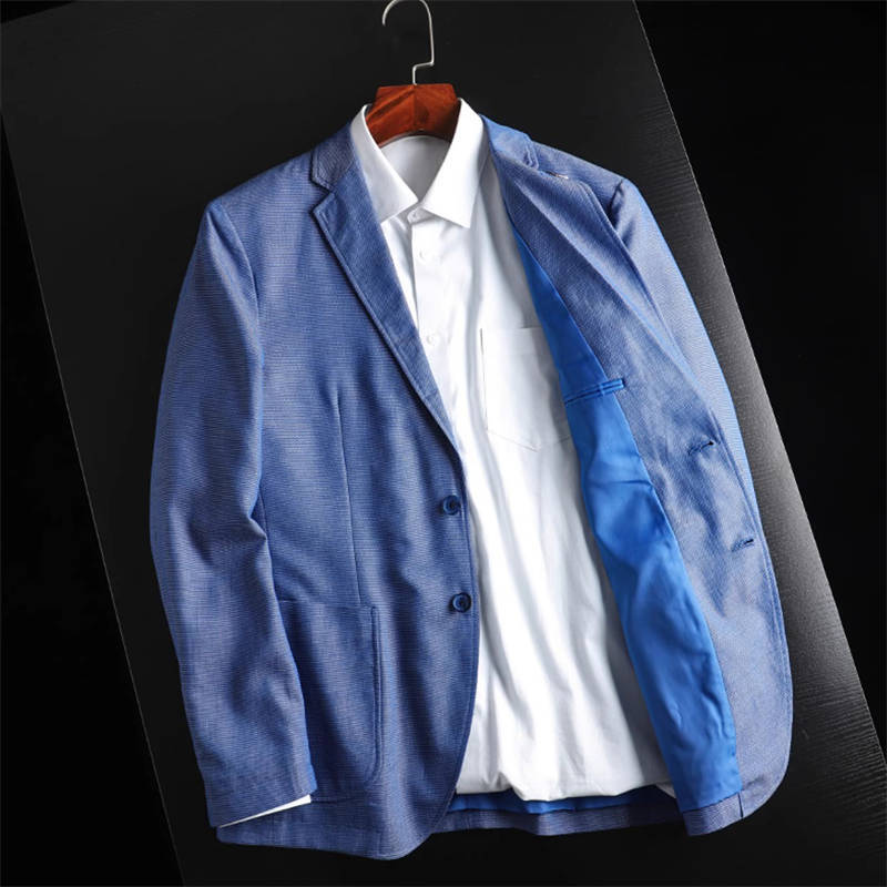 W0468-M青色 新品 2釦ジャケット ラードジャケット メンズ 防シワ 紳士服 軽量 薄手 細身 春夏秋 ビジネス カジュアル 通勤 ブレザー