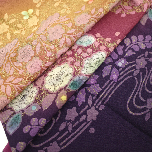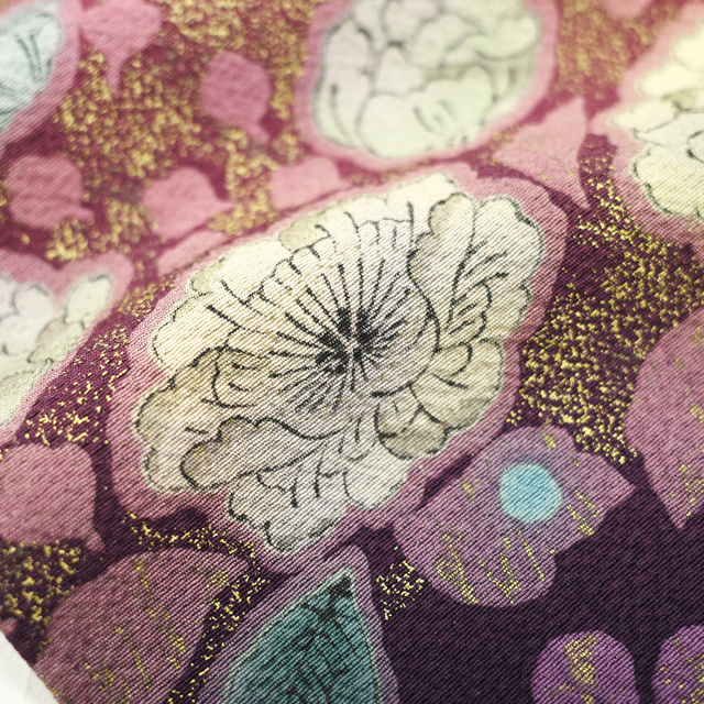 こちらのお品は、濃紫・ラズベリーレッド(赤紫)・黄茶色でぼかされた地。