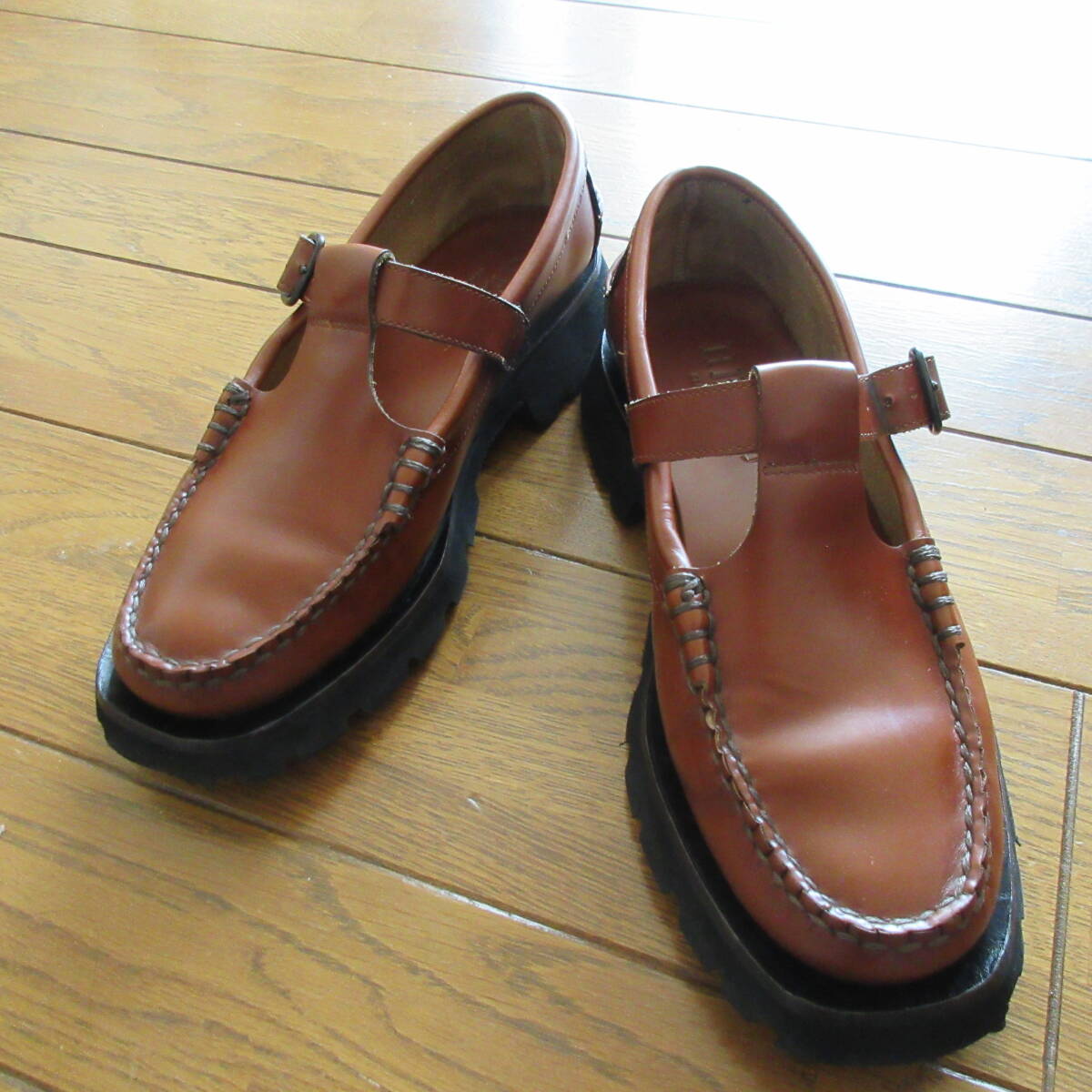 アッパーに美しい艶のあるレザーを使用。Tストラップデザインに仕上げた、トラディショナルなルックスが目を惹きます。