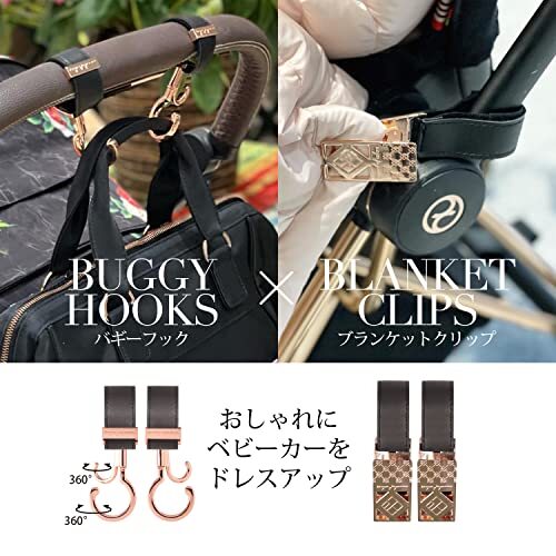 「e.x.p.japon(イー・エクス・ピー・ジャポン) 2点セット360度回転式バギーフック&ブランケットクリップBK合皮ブラック BK-合皮ブ」▼4573225335098▼(商品説明)金具:ブラック・BK-合皮ブラック b-bco03・・Style:金具:ブラックColor:BK-合皮ブラック・e.x.p.japonのバギーフック&ブランケットクリップの2点セット。ベビーカーをお洒落に便利にドレスアップしてくれます。・【バギーフック】「ママが使いやすい!」を形にした360°回転式ダブルフック。大小のフックは独立回転で、ベビーカー装着後でも好みに合わせて位置を調整可能。それぞれのフックに荷物を掛けられるので、1つのフックに荷物を引っ掛けすぎて取り出し辛くなるストレスから解放してくれます。・【ブランケットクリップ】夏の冷房対策や冬の防寒対策に!ベビーカーに取り付けて、ブランケットやタオルケットのずり落ちを防止します。・《スマートなルックス》SNSでも人気のデザイン性の高いベビーカーアクセサリー。高級感のあるデザインで、出産祝いのギフトにもおすすめです。テストを重ねた当商品は亜鉛合金の強度で丈夫な仕上がりになっております。※ベビーカーの転倒の恐れがありますので、荷物のかけすぎにはご注意ください。・《様々なシーンに利用可能な》ベビーカー以外にもペッ説明 ベビーカーをDressUpするバギーフック&ブランケットクリップのオシャレな2点セット。インスタグラムや雑誌での紹介も多数!著名人にも愛用いただいているアイテムです♪高級感のあるデザインで出産祝いのギフトにもおすすめ!