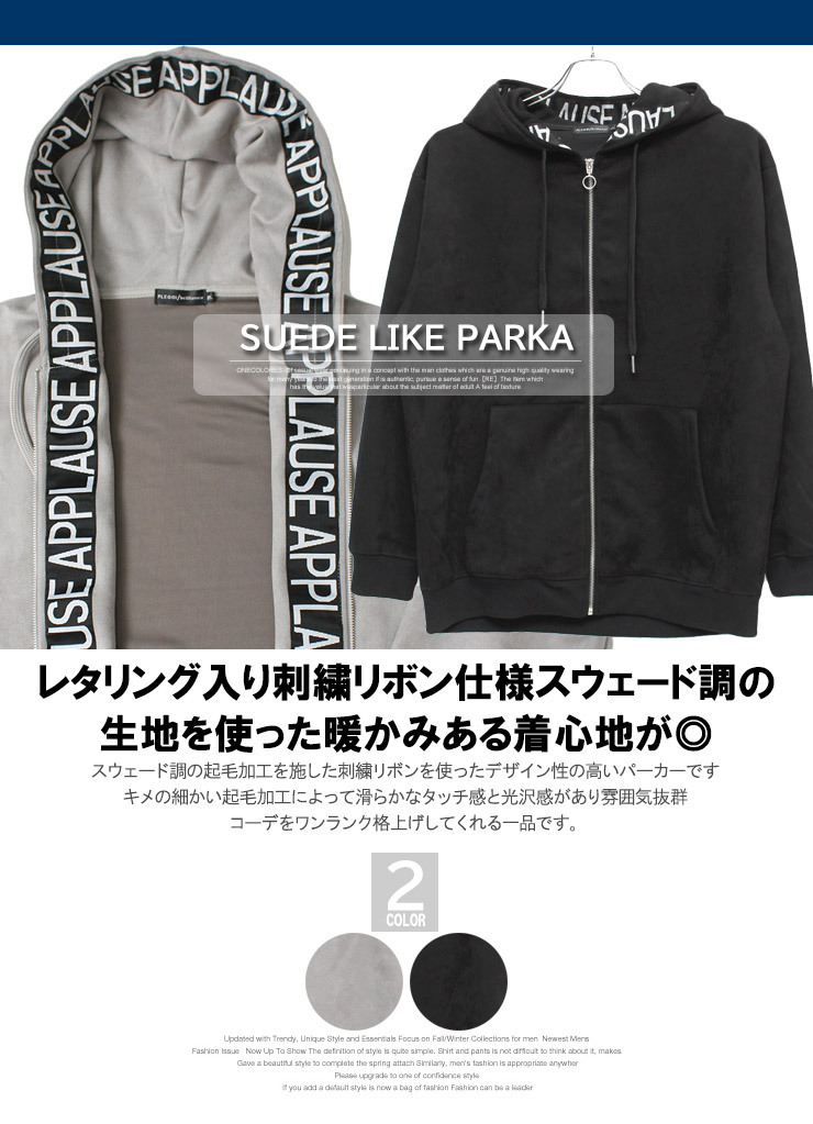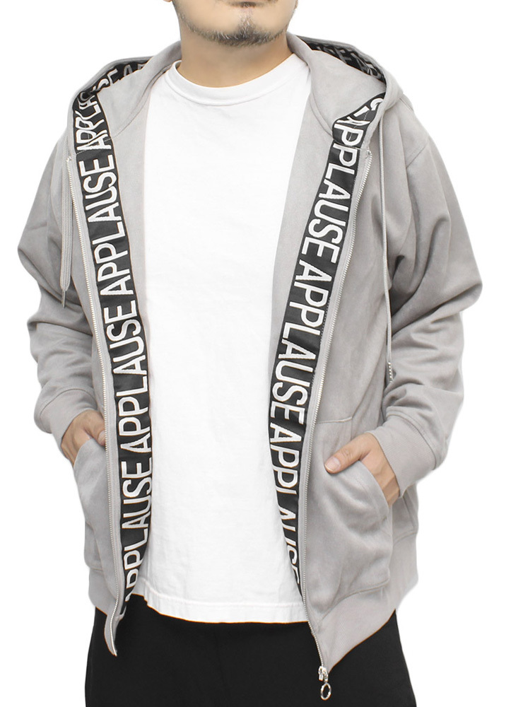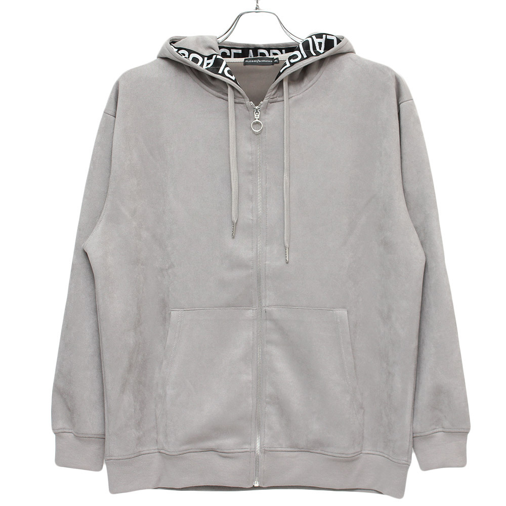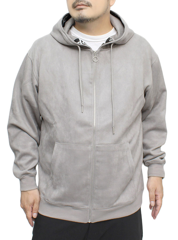| 商品名 | 【新品】 4L グレー パーカー メンズ 大きいサイズ フェイクスウェード フード裏 プリント ジップアップ スウェット |