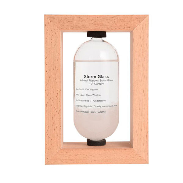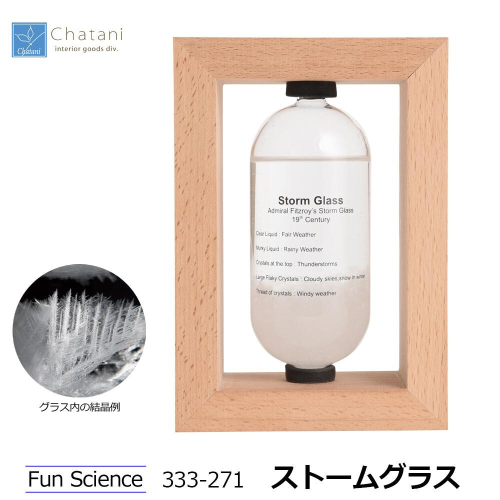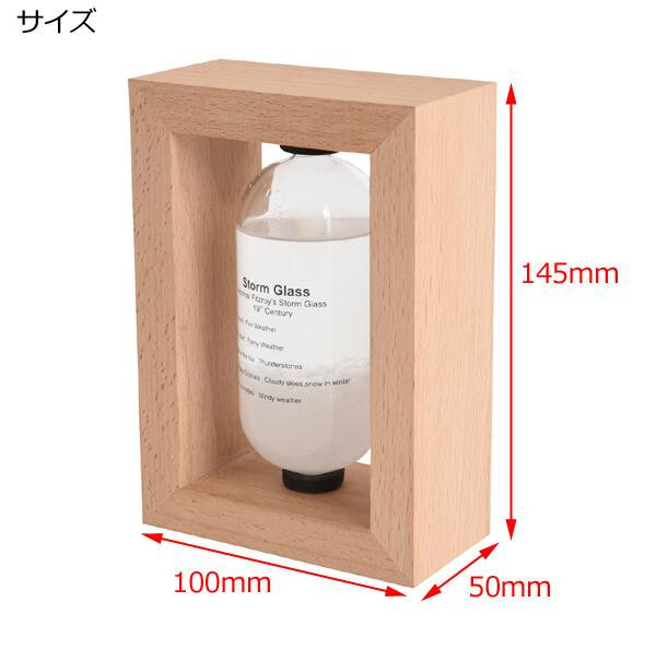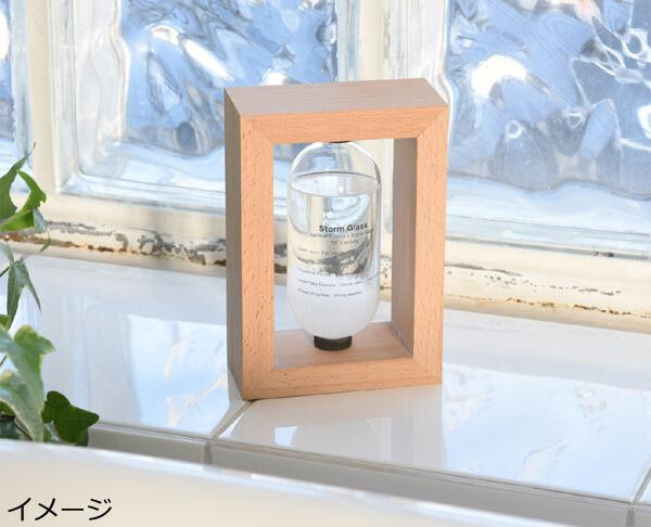 | ストームグラスは19世紀初頭にヨーロッパにて航海時に気象情報を予測するのに使われていました。複数の化学薬品をアルコールに溶かしてガラス容器に詰めたもので、天候によって結晶の様子が変化すると言われています。正確な気象情報を予測するためにはお使いいただけませんが、周りの気象環境の変化によって液体と結晶がユニークに変化しますので観賞用のオーナメントとしてお楽しみ下さい。 |