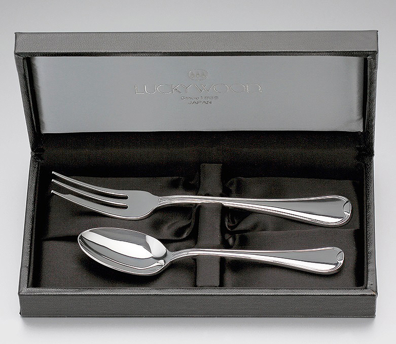☆ラッキーウッドロムネー洋白銀器シルバープレートティースプーン&ケーキフォークセット20ミクロン銀仕上ミラー仕上日本製新品