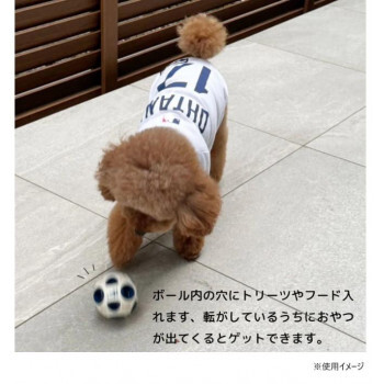 | ネームと背番号の入ったおもちゃです。ボール内の穴にトリーツやフード入れます、転がしているうちにおやつが出てくるとゲットできます。学習するので知育の発育と運動不足の解消に役立ちます。タフなラバー素材。 |
