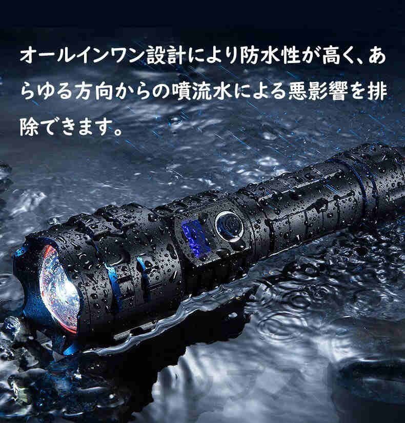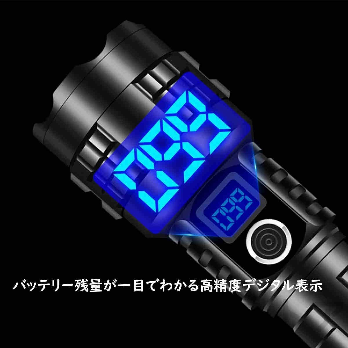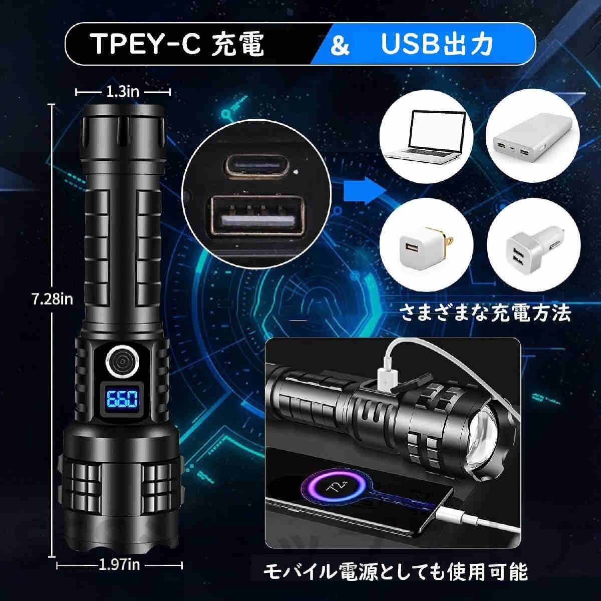 LED懐中電灯 50000ルーメン フラッシュライト Type-C充電 5段調光 充電式 懐中電灯 軍用 最強 XHP70 登山/防災
