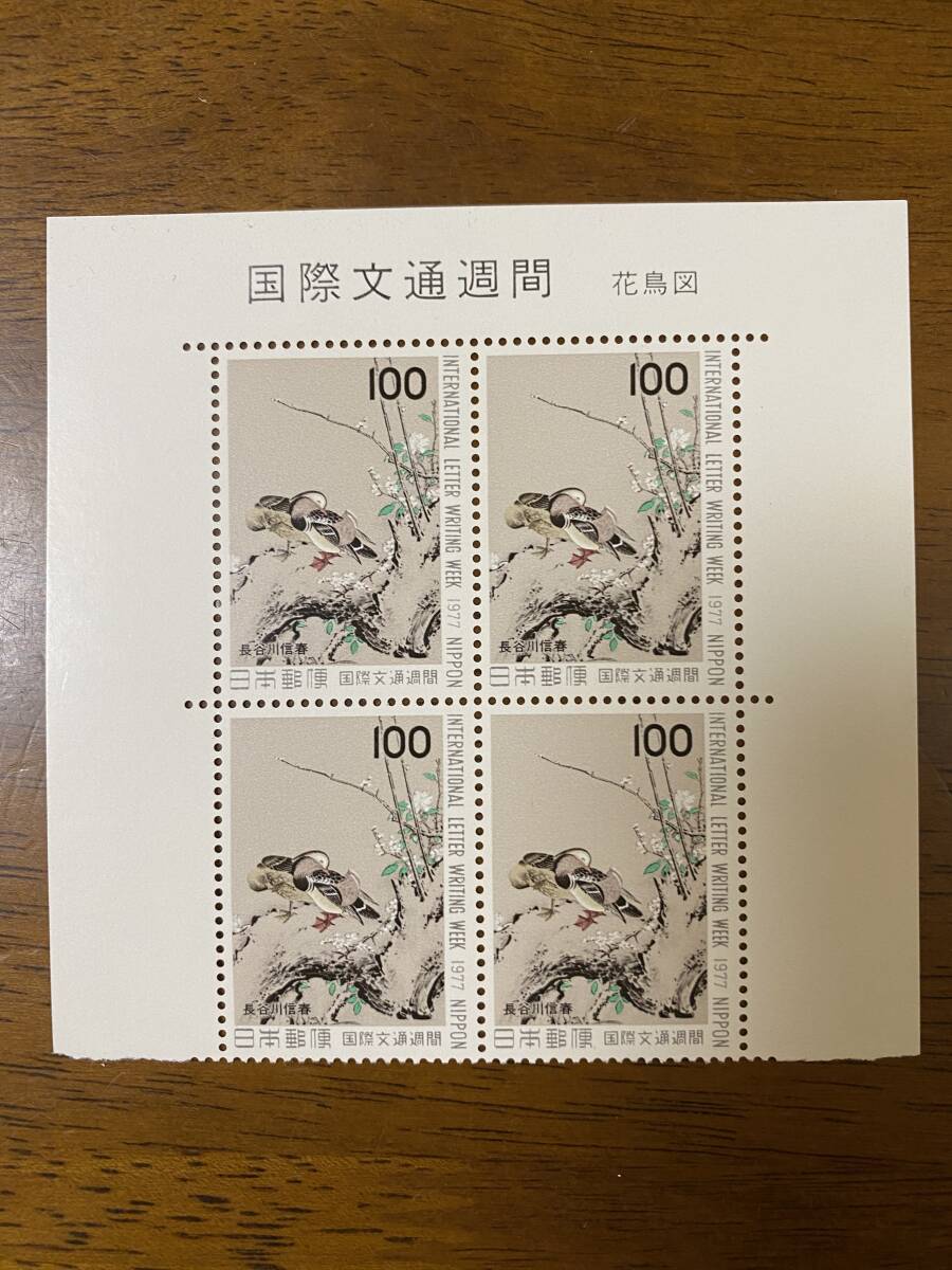 記念切手 未使用 国際文通週間 花鳥図 長谷川信春 100円切手4枚 切手 郵便切手