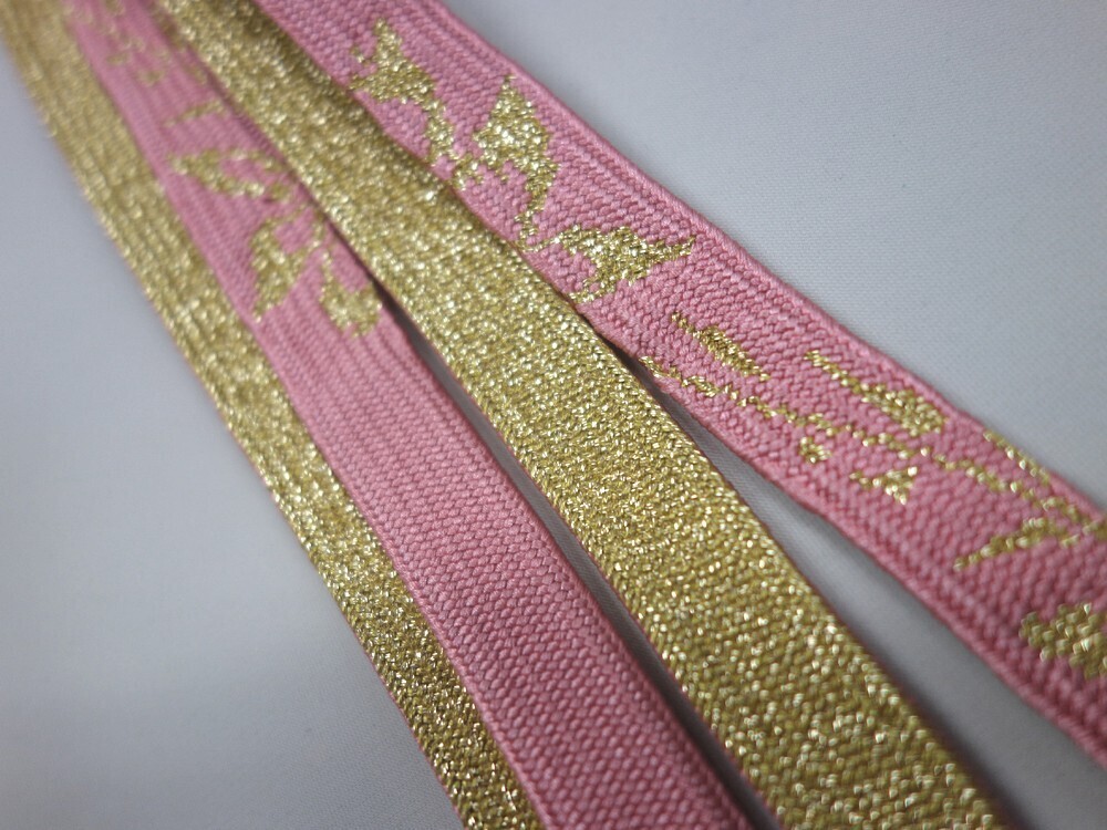 着物物語■K60702-13■未使用美品 帯締め 手組 平組 ピンク×金