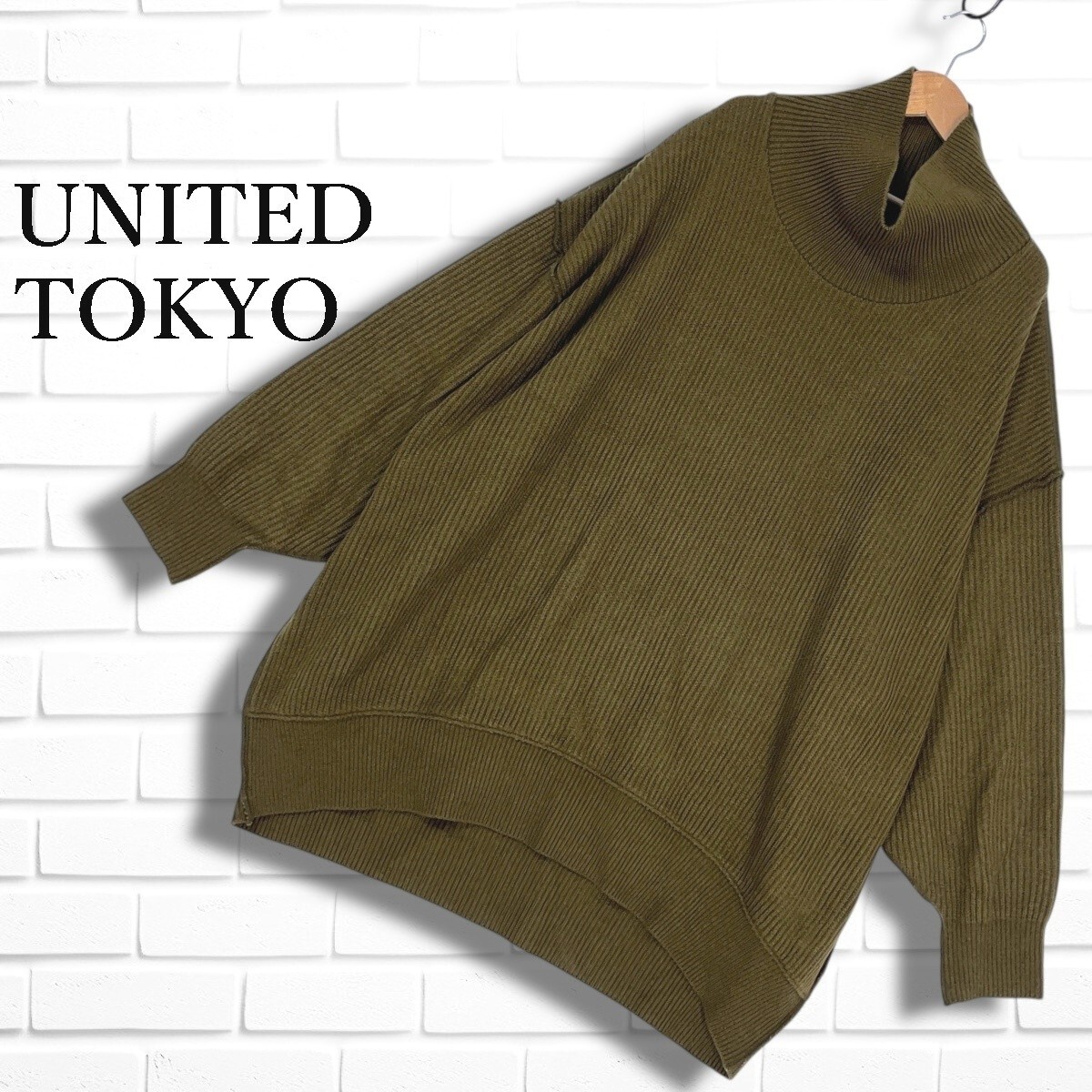 ◆美品◆ UNITED TOKYO ユナイテッドトウキョウ ウール オーバーサイズ 長袖 タートル ニット セーター 茶 ブラウン系 メンズ 2 ◆日本製 送料無料◆ 3935E◇