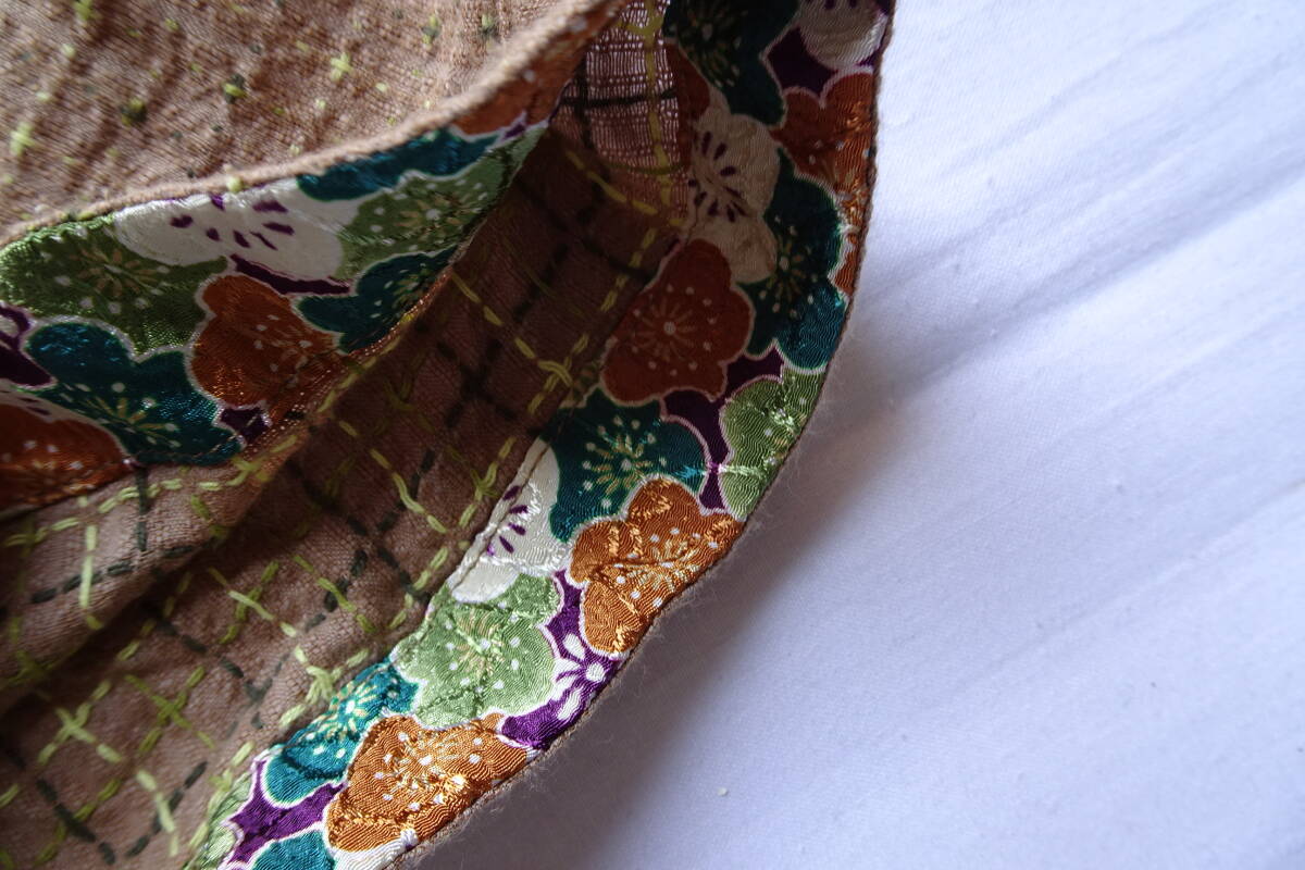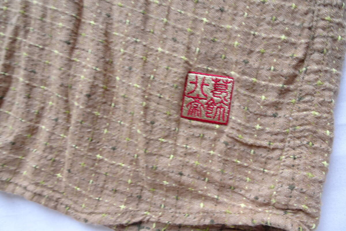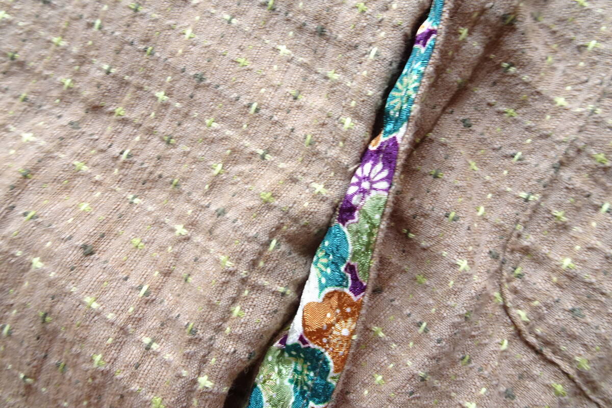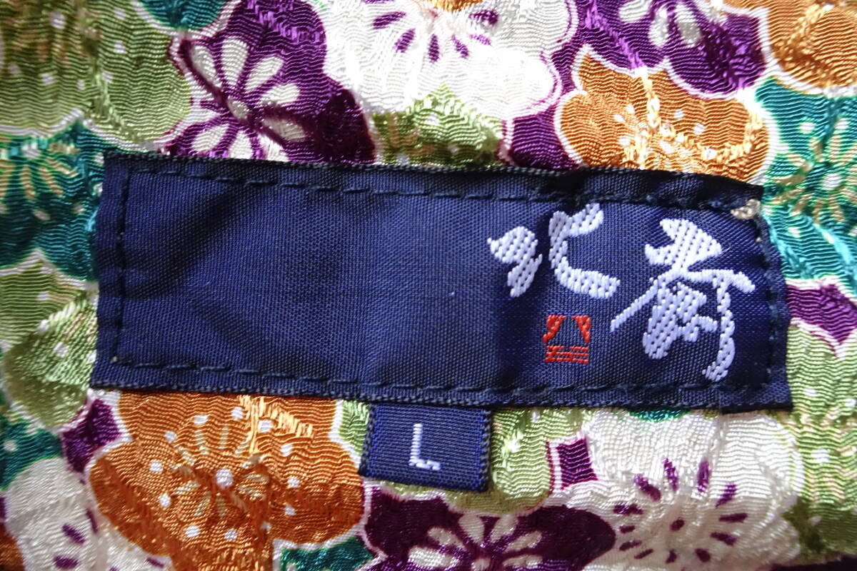 着用すると見えませんが、袖口内側、前立内側、和風花柄生地貼付け縫いです。