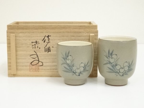 ys7384242; 佐渡無名異焼 人間国宝 五代 伊藤赤水造 夫婦湯呑(共箱)【道】