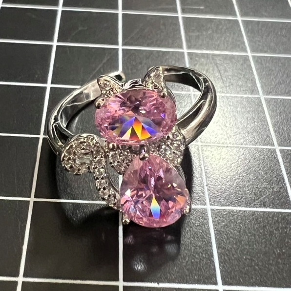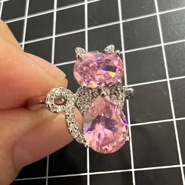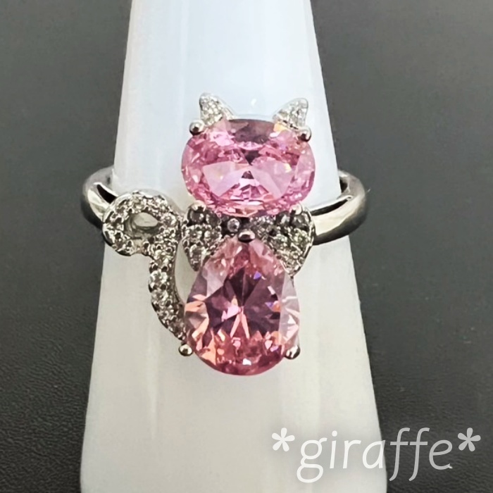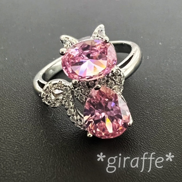 A886 匿名配送 指輪 レディース リング ジルコニア 猫 キャット ピンク フリーサイズ サイズ調節可能