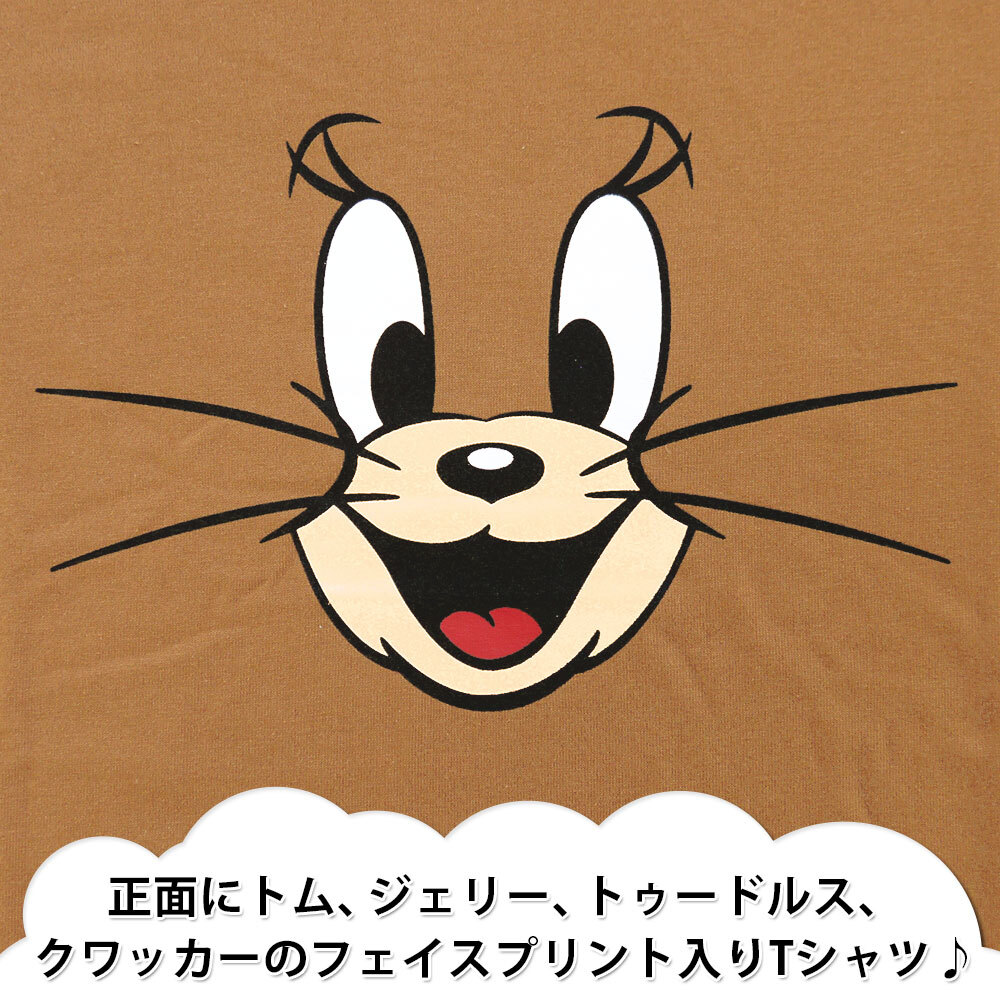 正規店仕入れの新品未使用品です 綿とポリエステル素材で、吸汗速乾に優れます 正面にトム、ジェリー、トゥードルス、 クワッカーのフェイスプリント入り半袖Tシャツ |