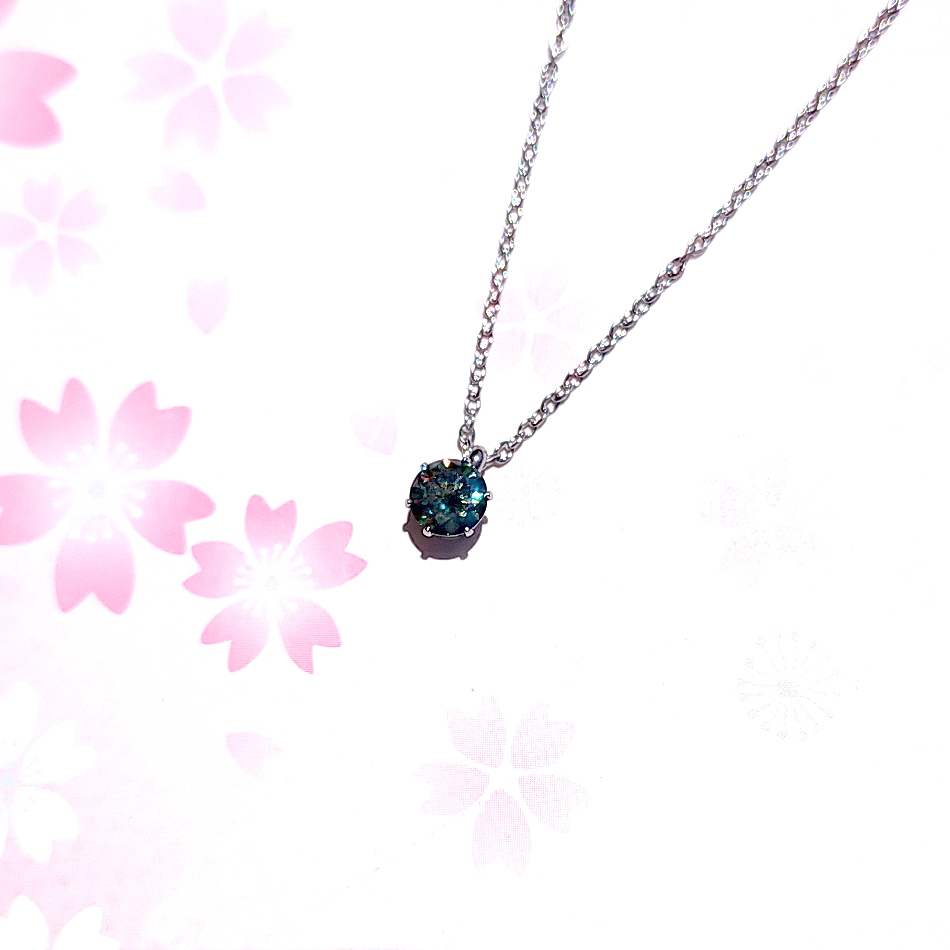 美麗 対アレルギー サージカルステンレス グリーン モアサナイト 一粒ネックレス