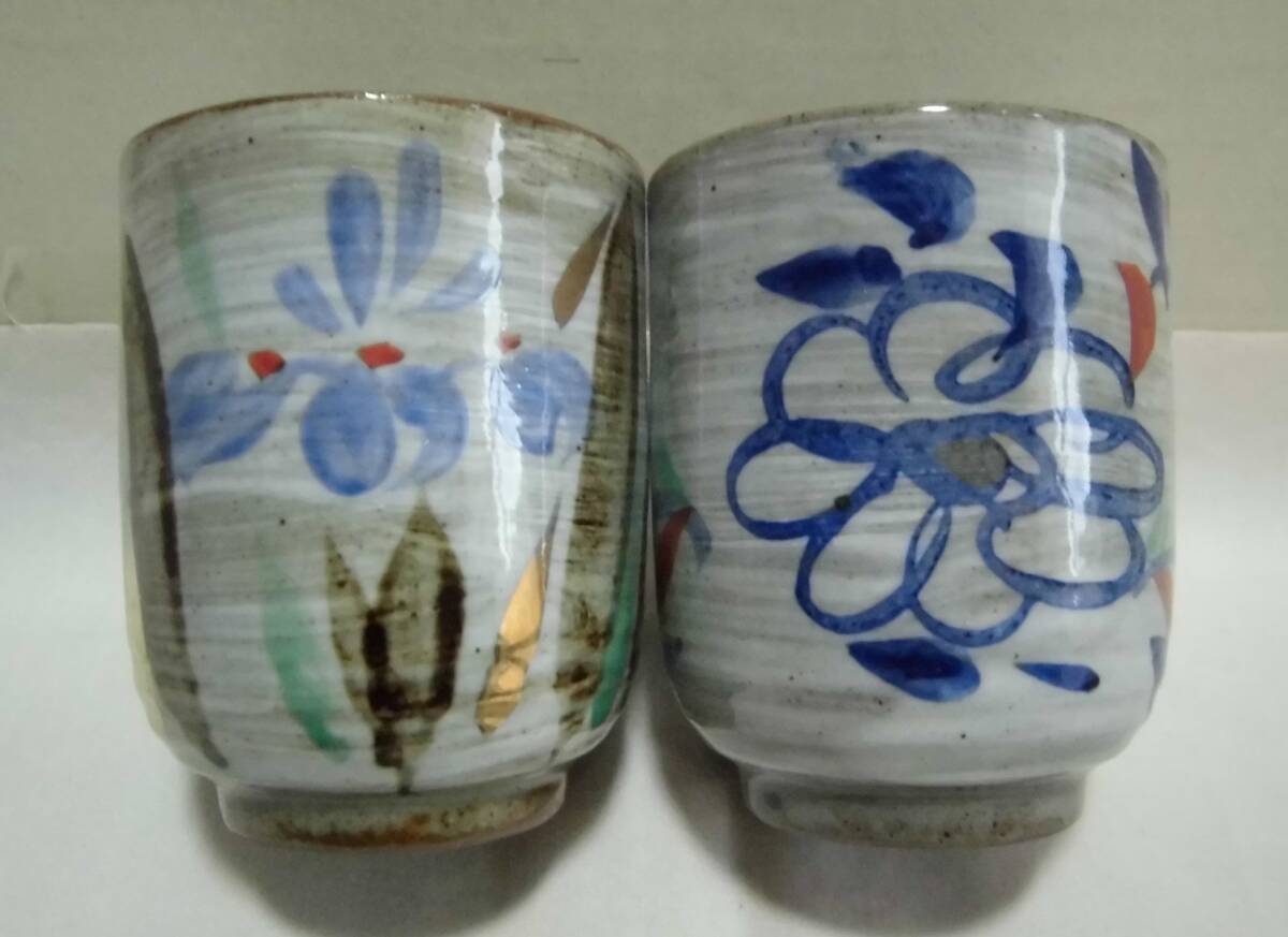 湯呑み茶碗 小さめ 花柄 柄違い 幸宗 4客 色絵 金彩 茶器 陶器 工芸品 ぐいみ 酒器にも レトロ