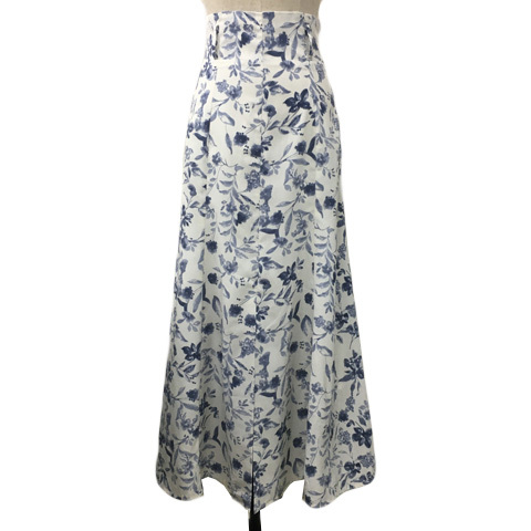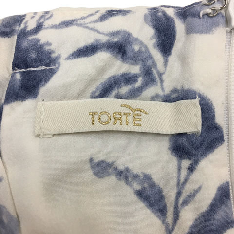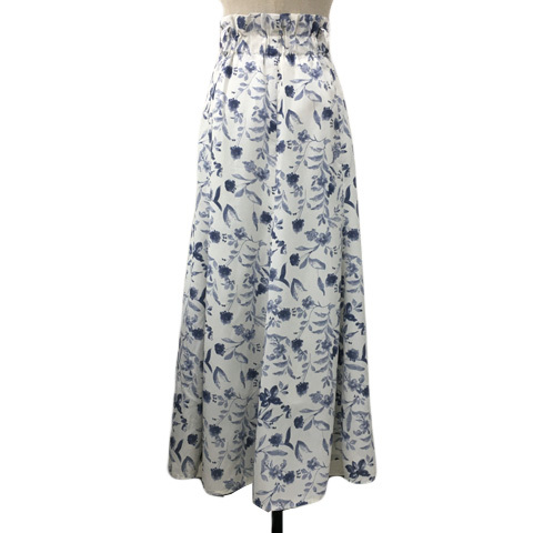 トルテ TORTE スカート フレア ロング ウエストゴム 花柄 総柄 スリット F 白 青 ホワイト ブルー レディース