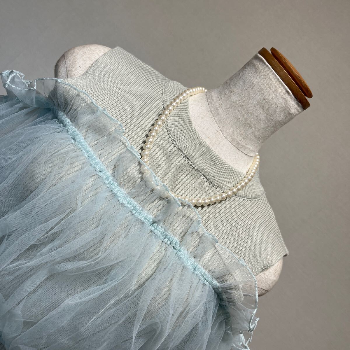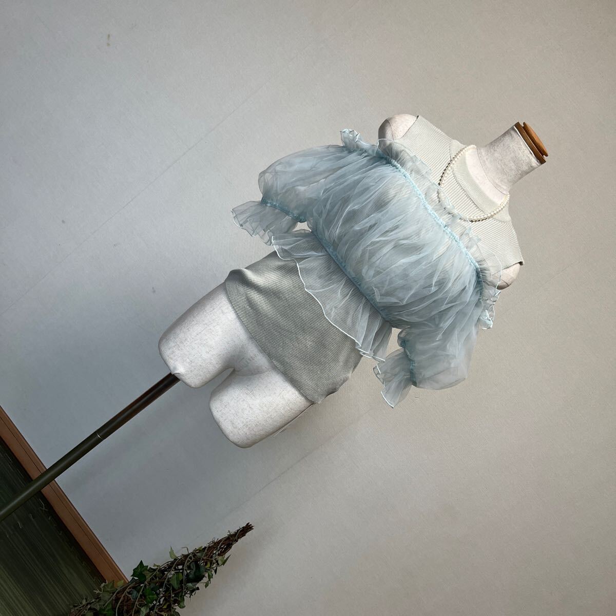 新品のtocco closet(トッコクローゼット)の大人っぽいリブニットと 透け感のあるふんわりシアーバルーンスリーブを 切り替えた、高感度な洒落感のプルオーバー♪ ヘルシーな肌見せができるオープンショルダーで シーズンライクな着こなしに。 コンパクト×ボリューミーなシルエットが デザインを引き立て、周りと差をつける1枚です。 ネックレスはついていません。