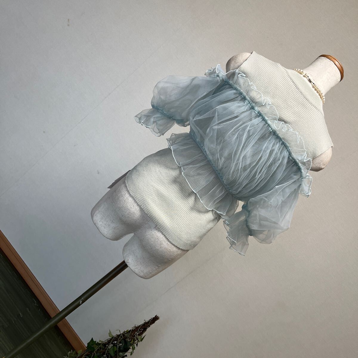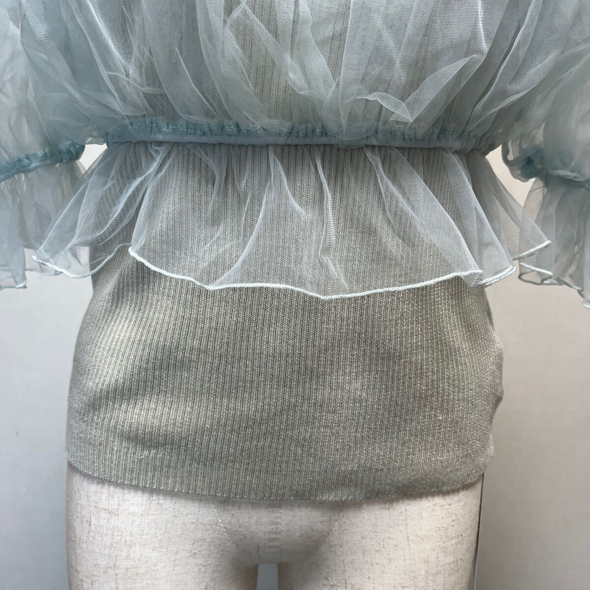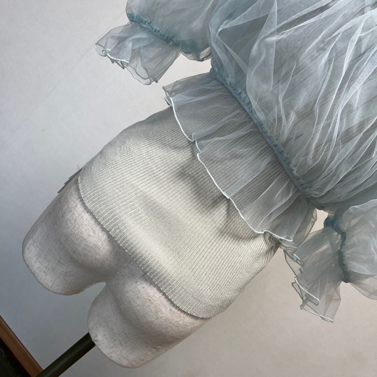 7-7新品 シアーバルーンスリーブ切替リブニットプルオーバーオープンショルダーニットミント tocco closet(トッコクローゼット) 9号 M