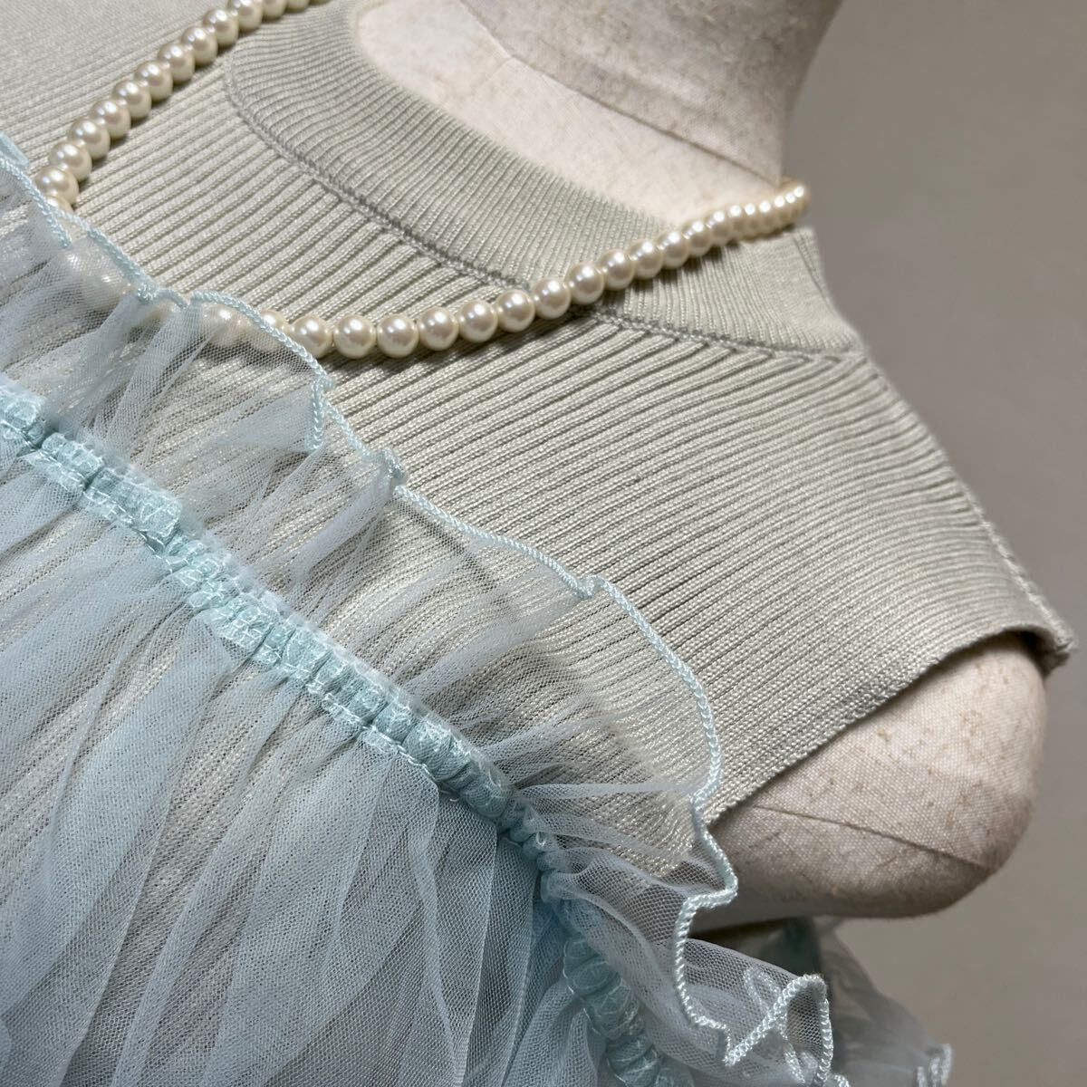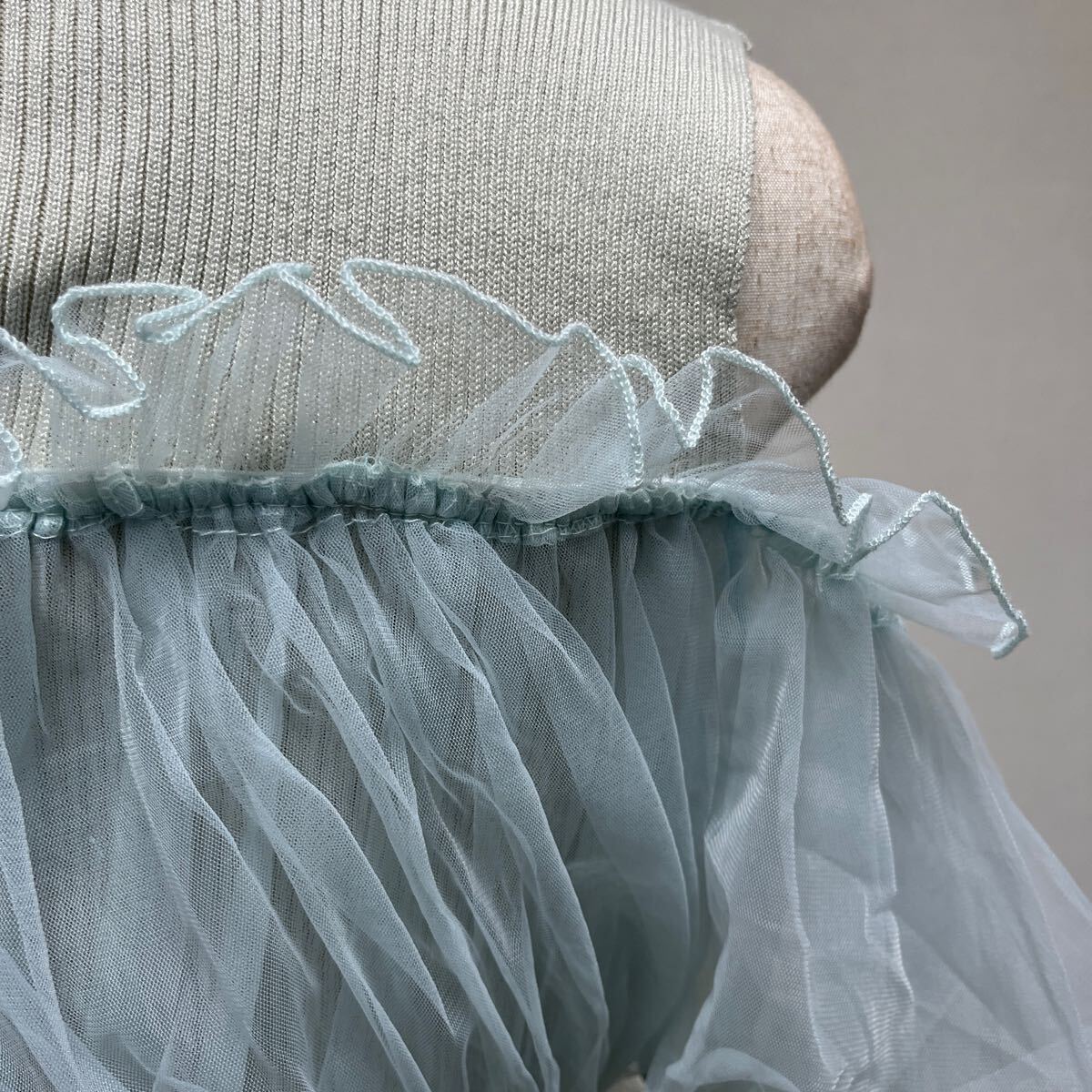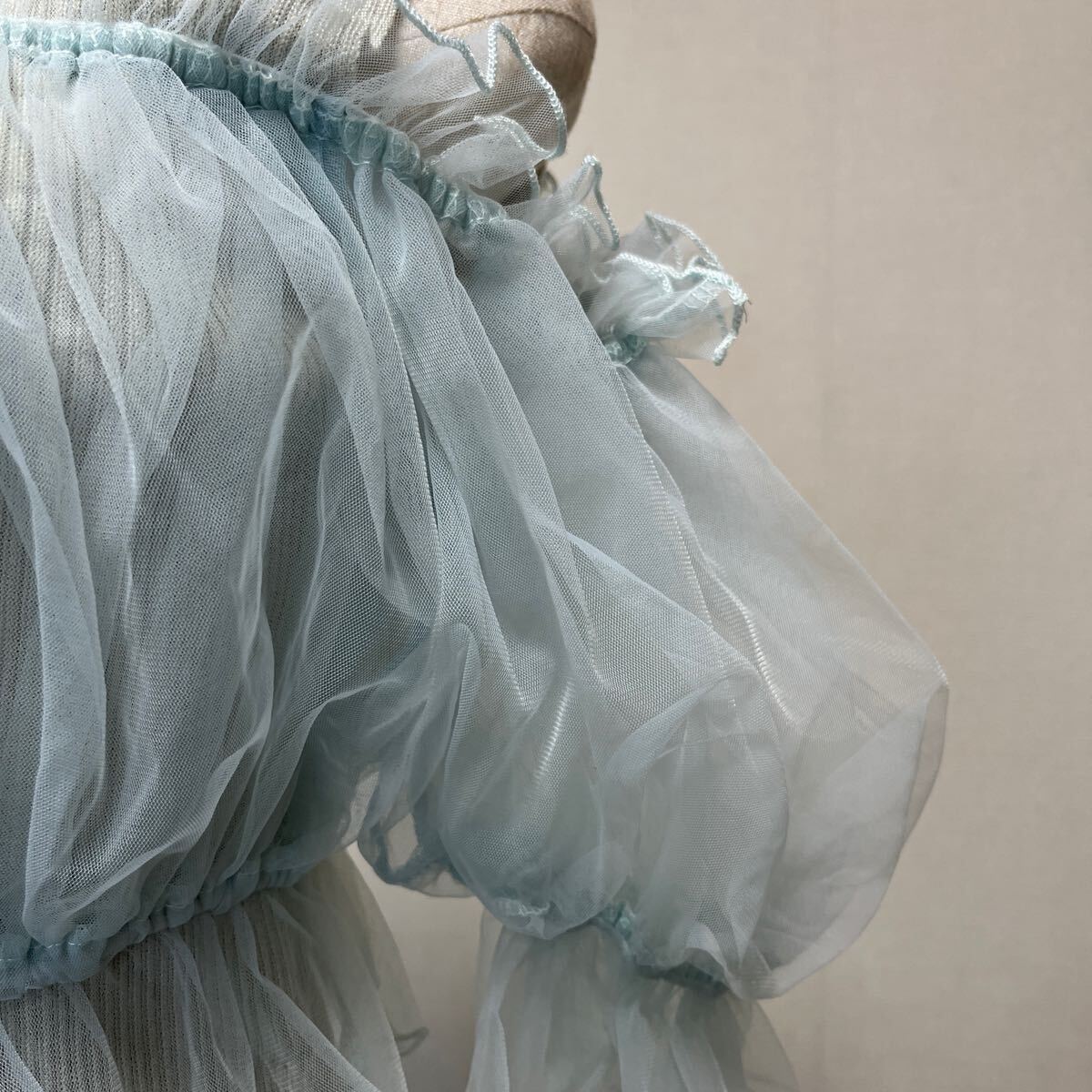 7-7新品 シアーバルーンスリーブ切替リブニットプルオーバーオープンショルダーニットミント tocco closet(トッコクローゼット) 9号 M