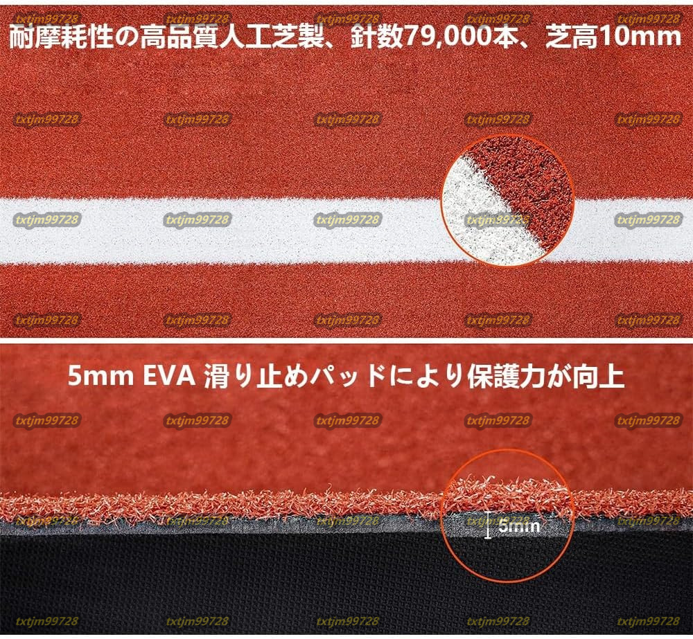 【高密度人工芝】当社のバッターマットは、ニードルパンチ技術を採用した100%新しい耐紫外線性合成芝で作られており、1㎡79000ステッチなので、バッティング練習の回数に関係なく、色あせたり、剥がれたり、欠けたりすることはありません。