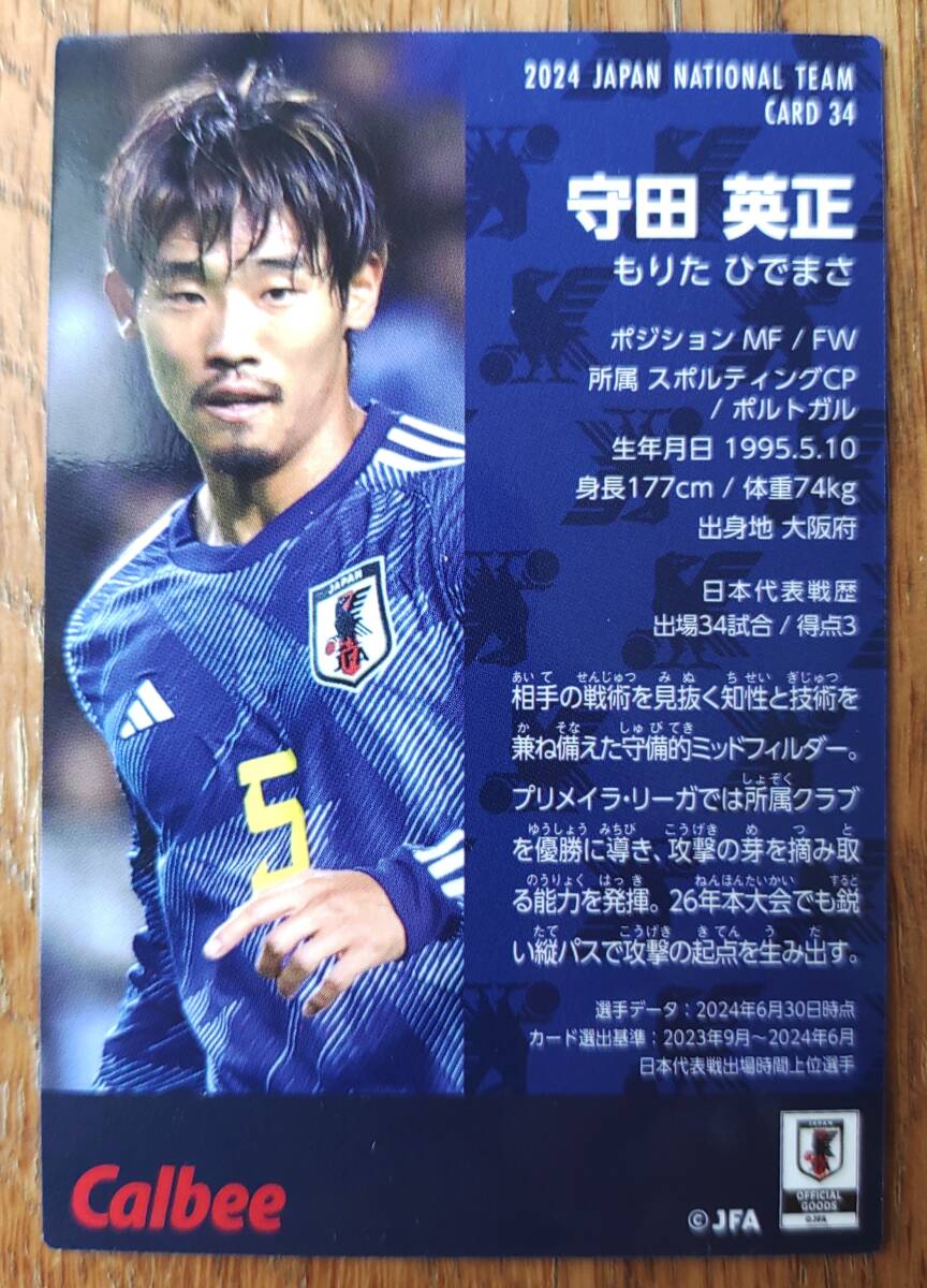 新品同様 カルビー サッカー日本代表チーム2024 レギュラーカード 34 MF/FW 守田 英正