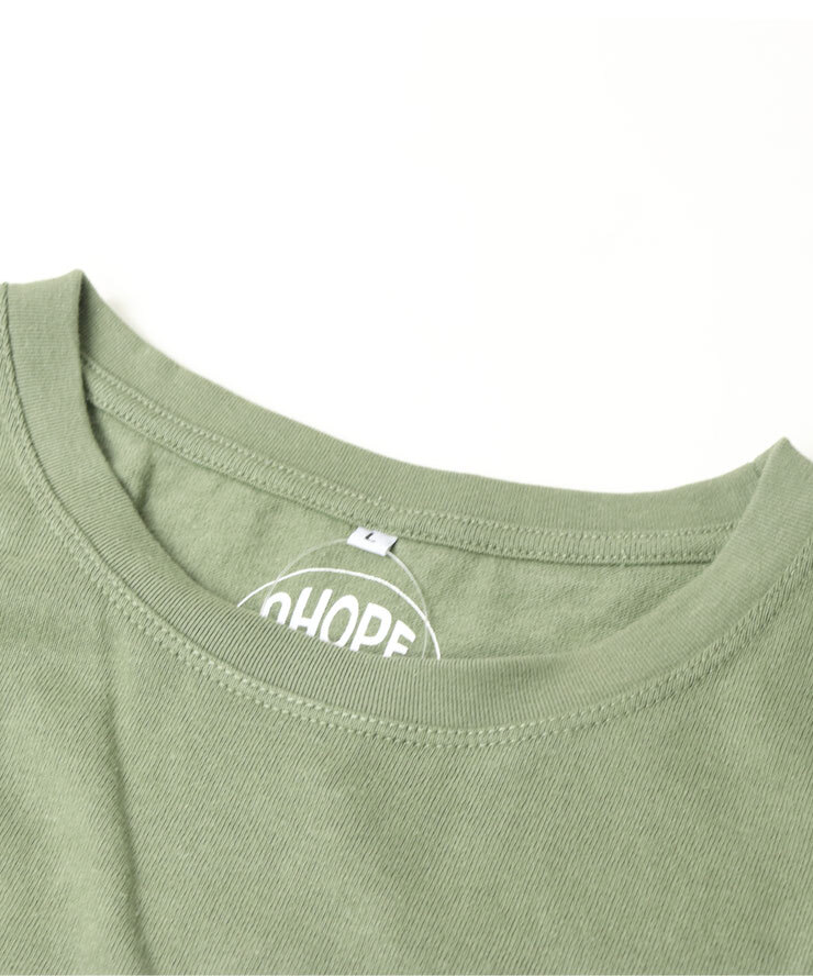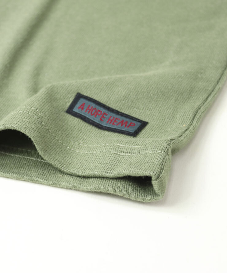 A HOPE HEMP定番のレギュラーTシャツ。ヘンプとオーガニックコットンを混合した生地で優しい肌触り。