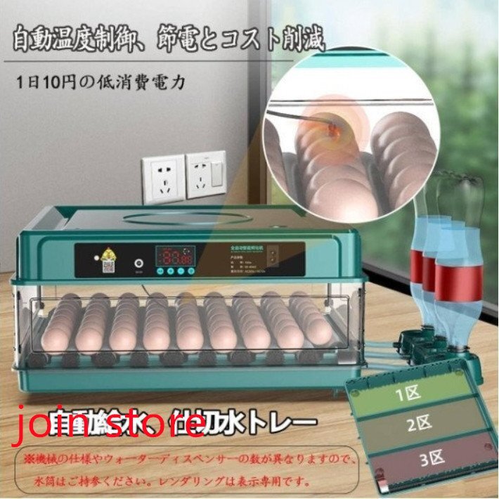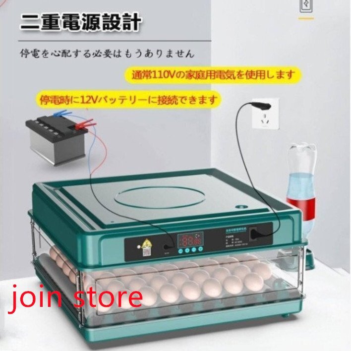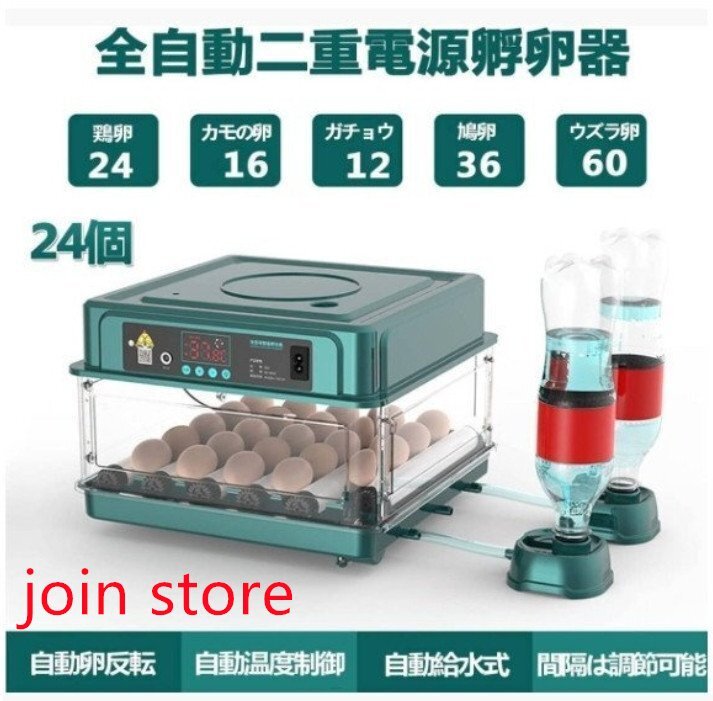 入卵数: 24個:ニワトリ 24個、アヒル 16個、ガチョウ12個、鳩36個、ウズラ60個 付属の英語の説明書 商品の説明簡単に人工孵化を