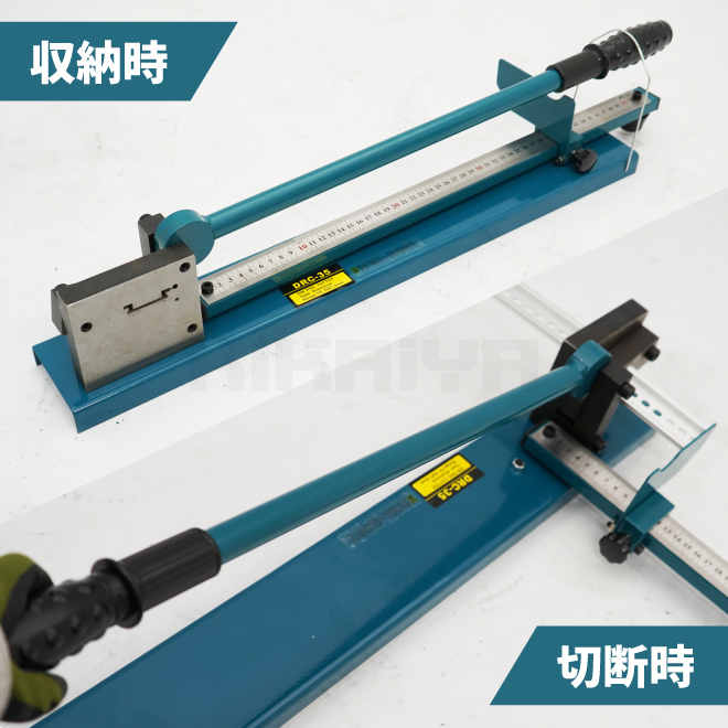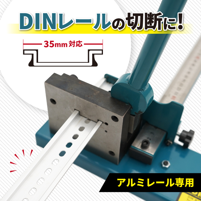 ・制御盤の製作に欠かせない作業を格段に効率化! ・定規とガイドが付属しており、必要な長さに簡単にレールを切断できるので大変便利 ・手動操作ながら、スムーズな切断が可能で、作業効率を大幅に向上させます ・ガイド範囲は40~500mmあり、ガイド板は左右どちらでも取付可能です ※ガイド板はお客様で取り付けてください ・使い方は刃にレールを差し込み、ハンドルを上から押すだけ ・ハンドルのグリップは表面に凹凸があり、滑りにくく力を入れ易い形状です |