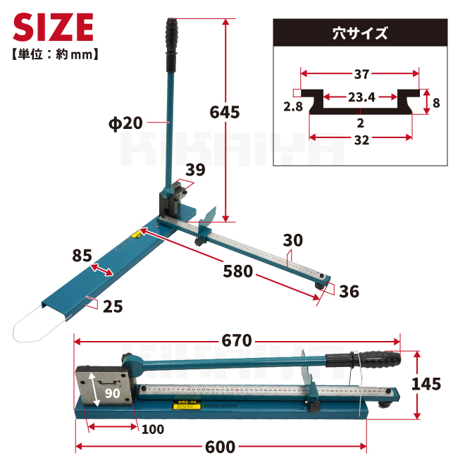 ※刃には錆止めが付いています ※錆止めがレールに付着しますので、レールを清掃してください ※アルミ以外のレールを切らないでください ※ご使用の際は保護メガネ、保護手袋を着用してください ※しっかりとした硬い水平な場所に設置してご使用ください ※ご使用後は水分をふき取り、乾燥させた状態で保管をしてください |