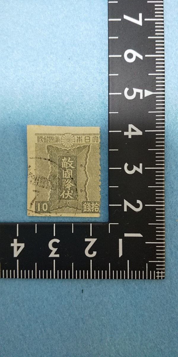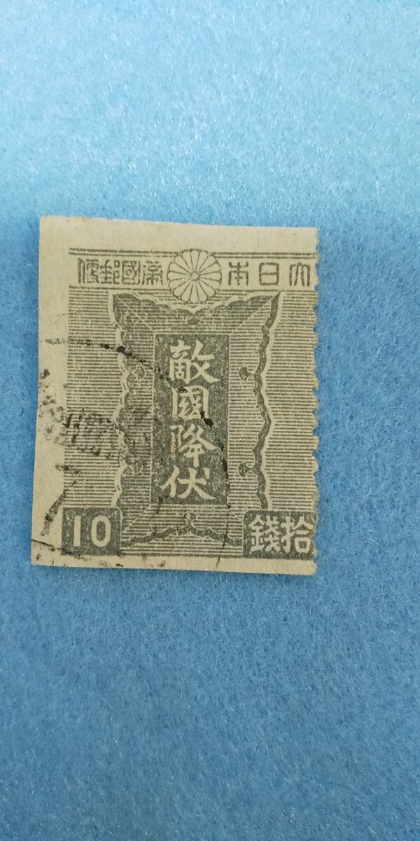【希少品】灰色勅額10銭 第二次昭和敵国降伏10銭切手 ミシン目ズレ有り 昭和 拾銭 八王子引き取りOK25623