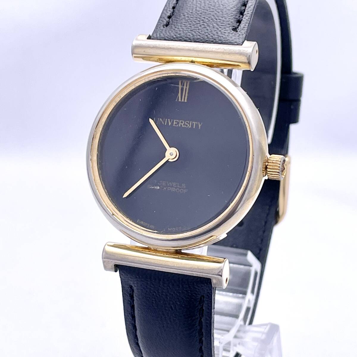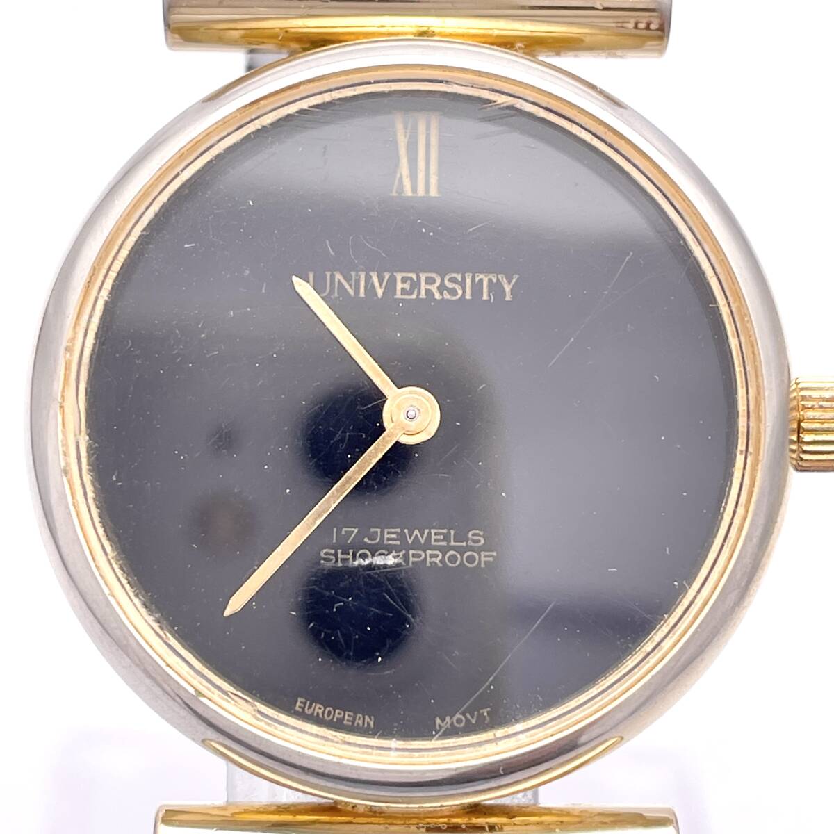 UNIVERSITY ユニバーシティ 腕時計 メンズ ウォッチ 手巻き 機械式 ブラックフェイス 17JEWELS 17石 金 ゴールド 銀 シルバー P3670