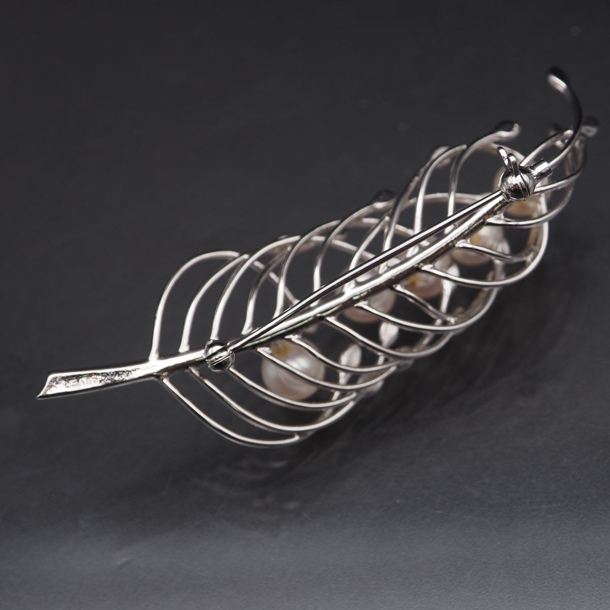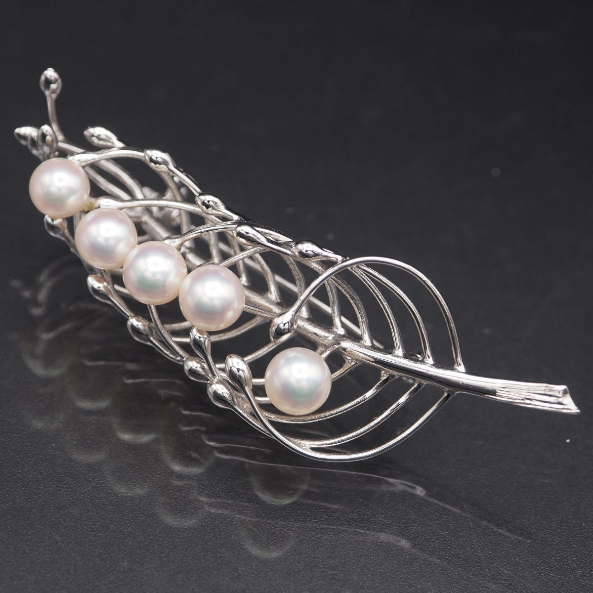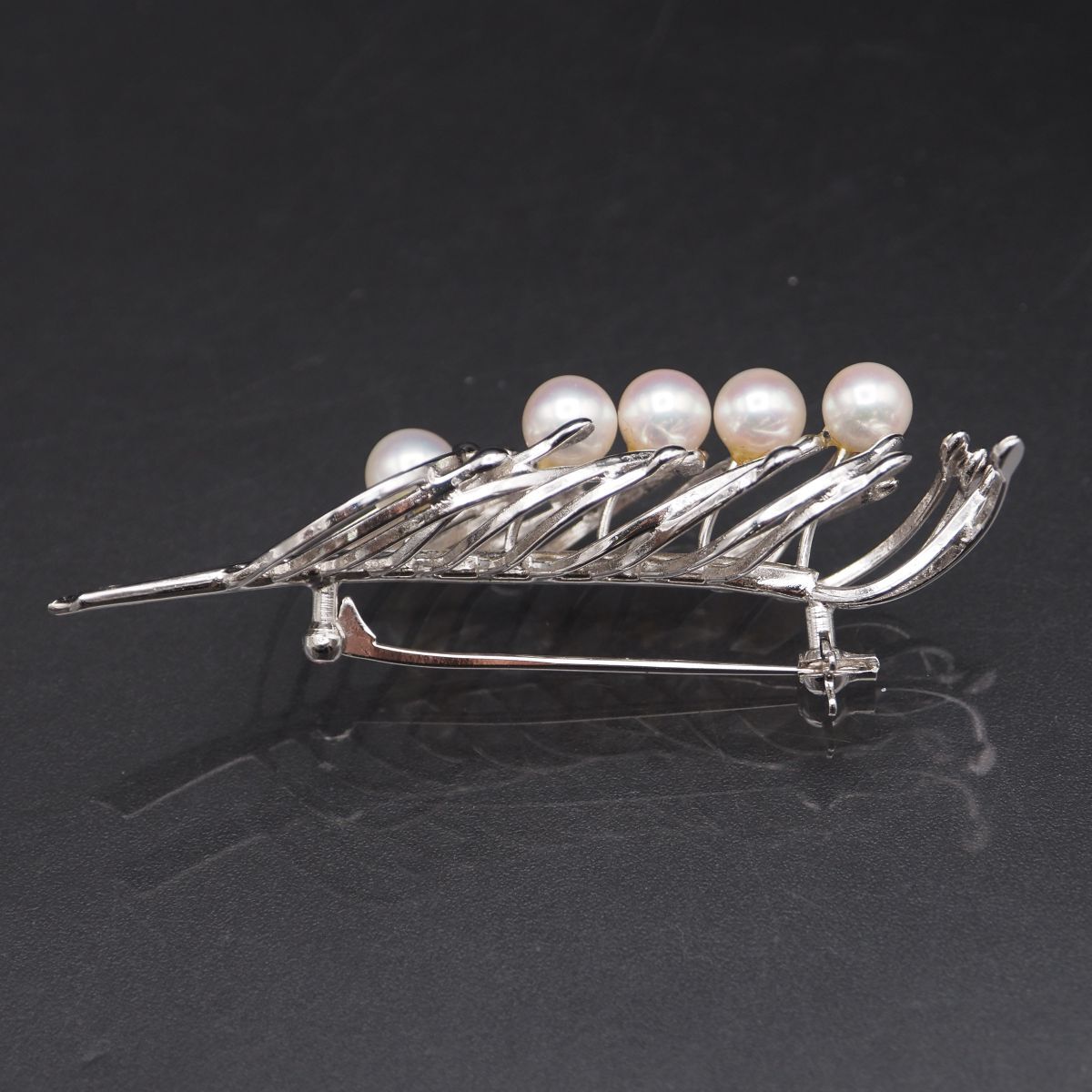 A046 本真珠 6~6.7mm5珠 パール SILVER刻印 ブローチ リーフ デザイン シルバー コサージュ 6月誕生石